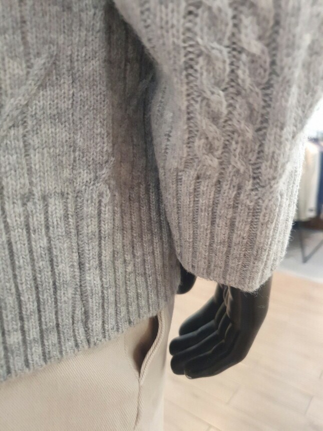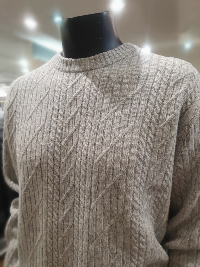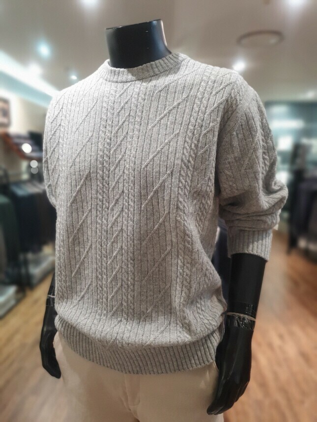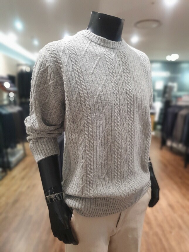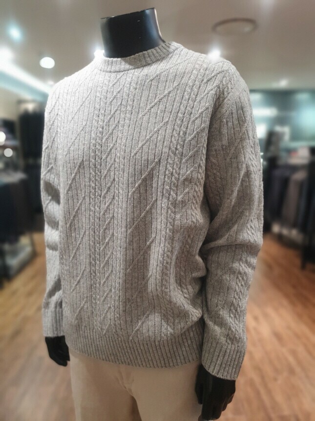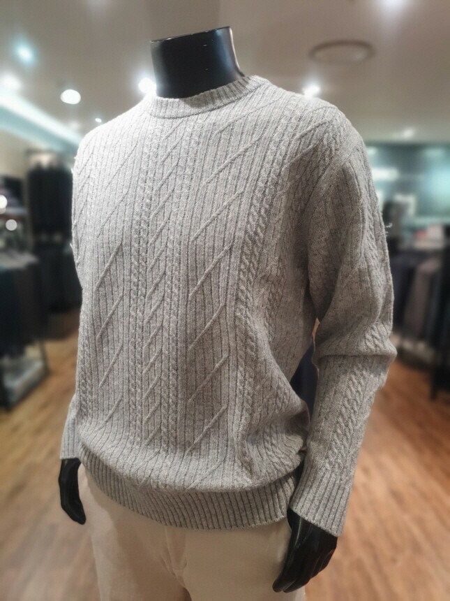 [바쏘옴므] WSY3-W R-23-ALG 24년F/W 모 혼방 꽈배기 라운드 니트