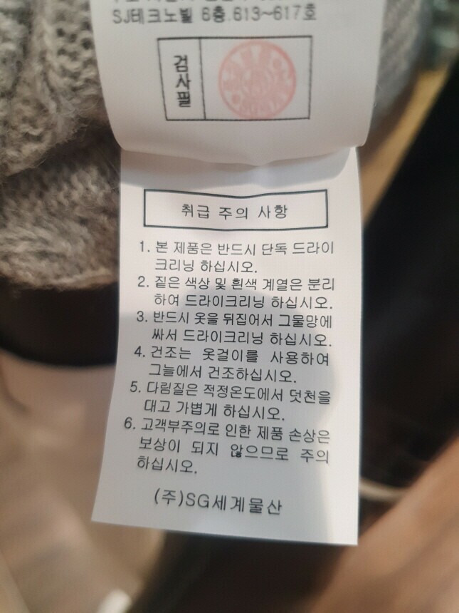 | 6. 세탁방법 및 취급시 주의사항 | 드라이크리닝 |