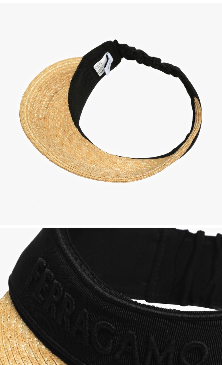 페라가모 36 0772 0776236 (360772 776236) 로고 라피아 바이저 여성 썬캡
