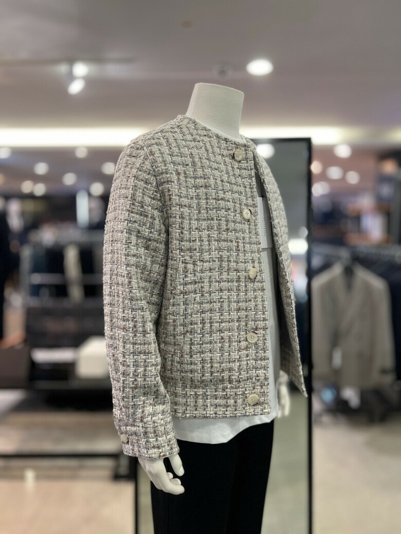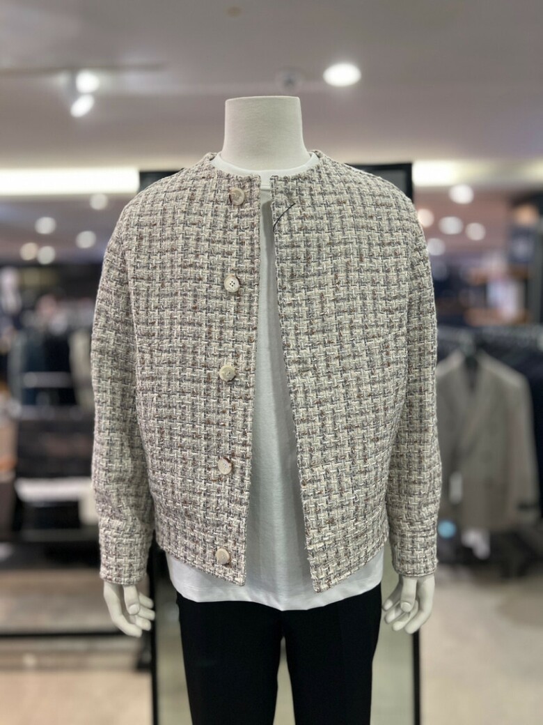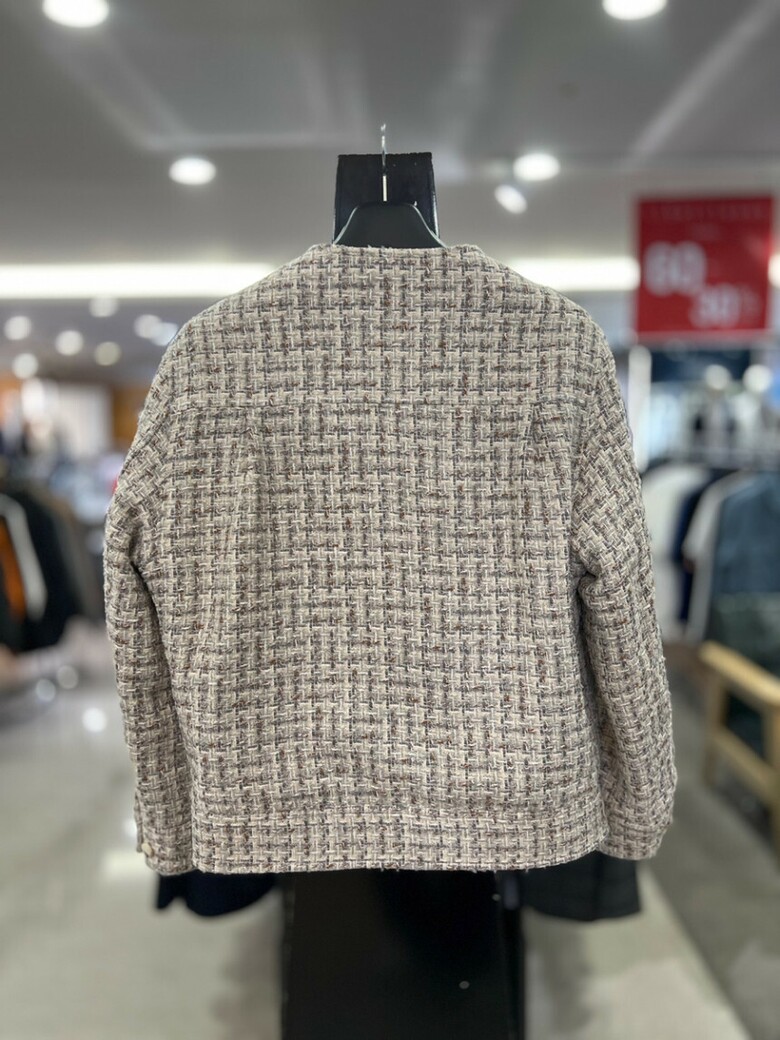 리버클래시 아이보리 오버핏 카라리스 트위드 트러커 점퍼 LKF22412
