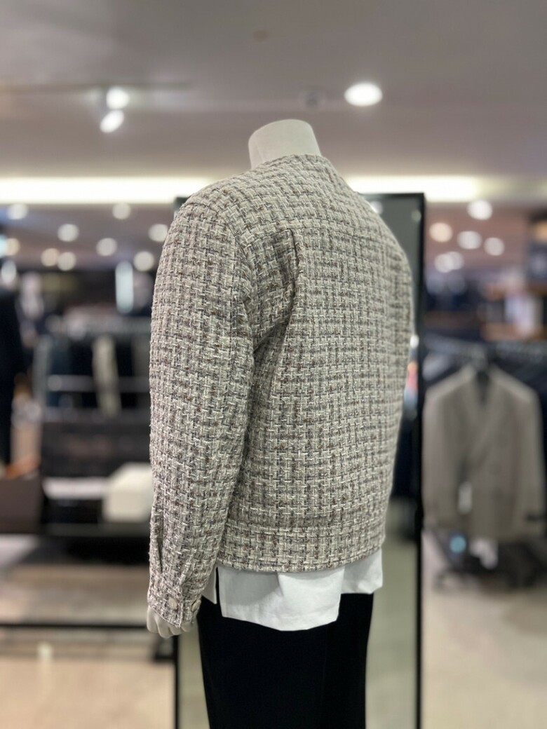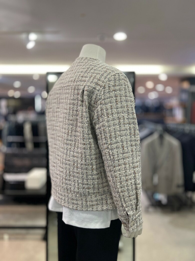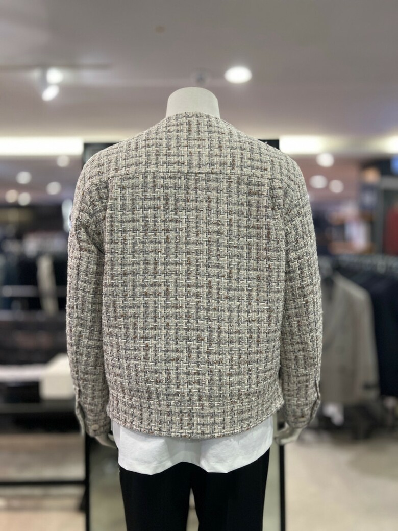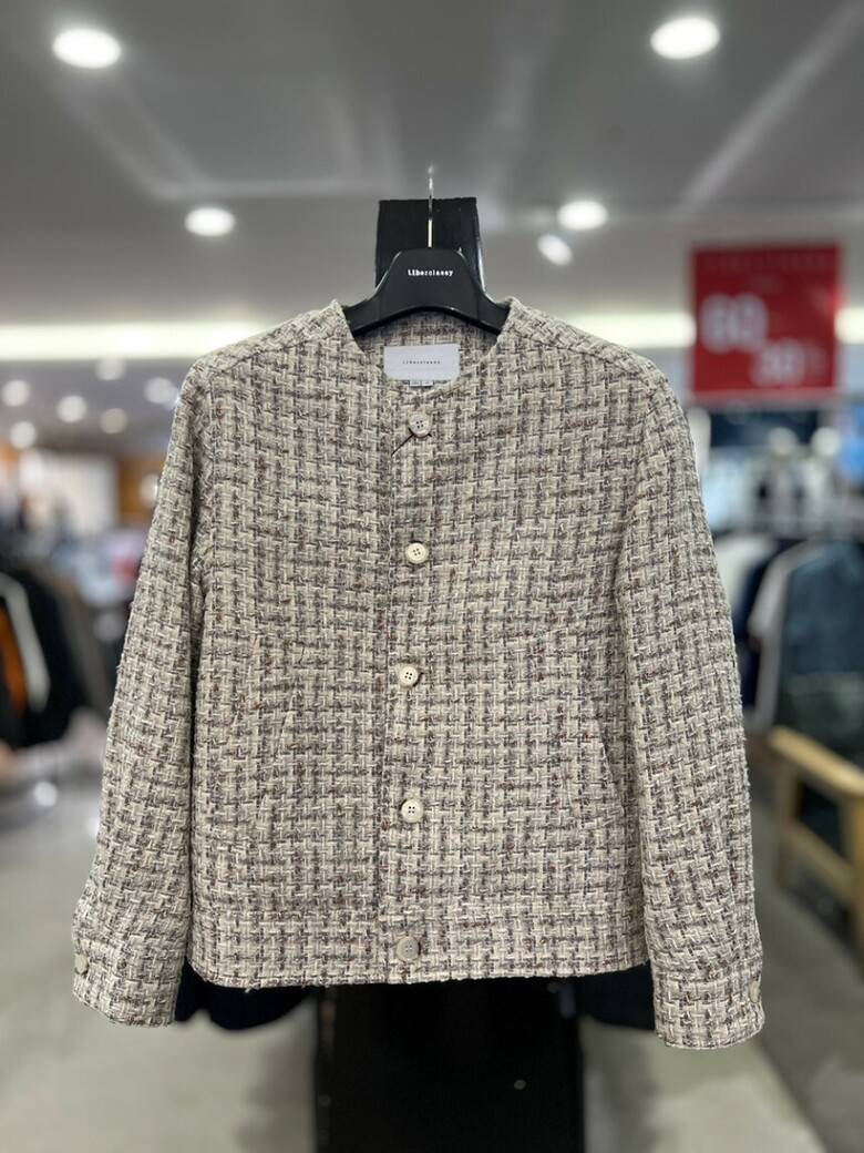 리버클래시 아이보리 오버핏 카라리스 트위드 트러커 점퍼 LKF22412