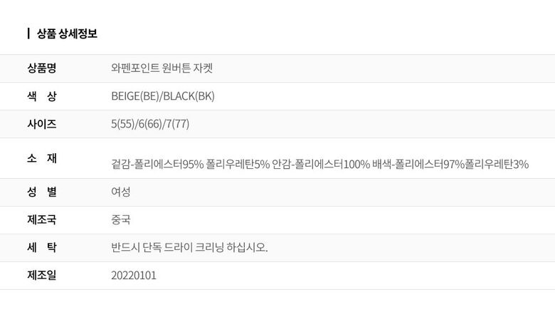 | 6. 세탁방법 및 취급시 주의사항 | 상세페이지 참조 |