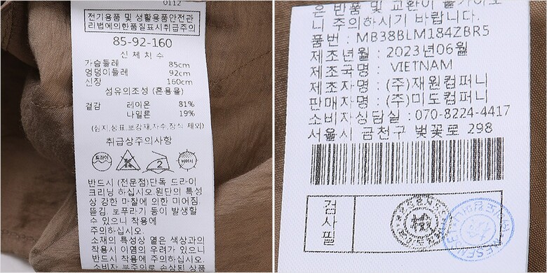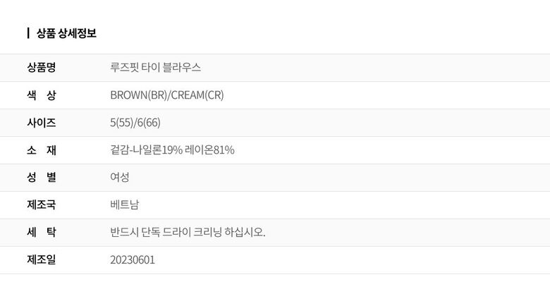 | 6. 세탁방법 및 취급시 주의사항 | 상세페이지 참조 |