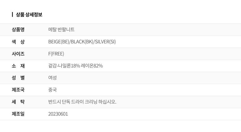| 6. 세탁방법 및 취급시 주의사항 | 상세페이지 참조 |