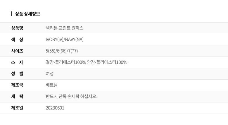 | 2. 색상 | 색상:IVORY(IV)/NAVY(NA) |