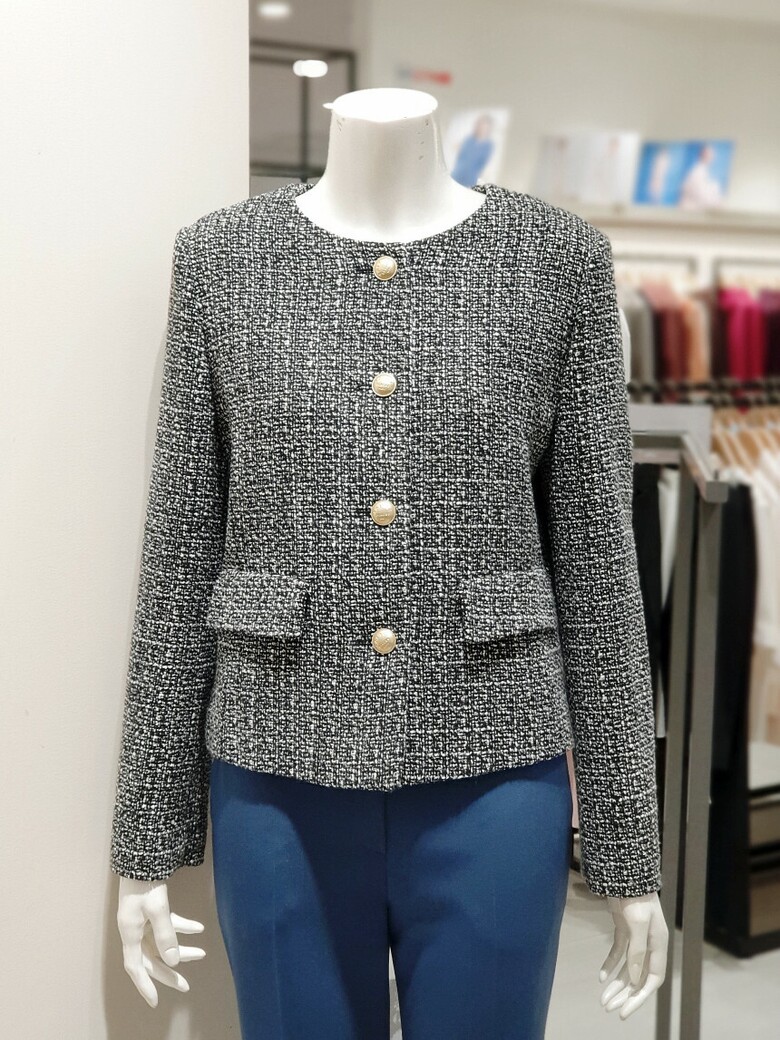 우아한 무드가 느껴지는 트위드 재킷입니다.