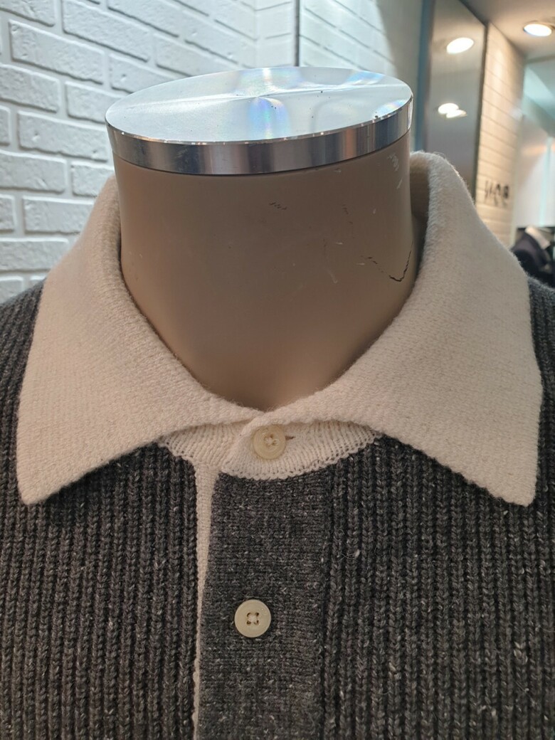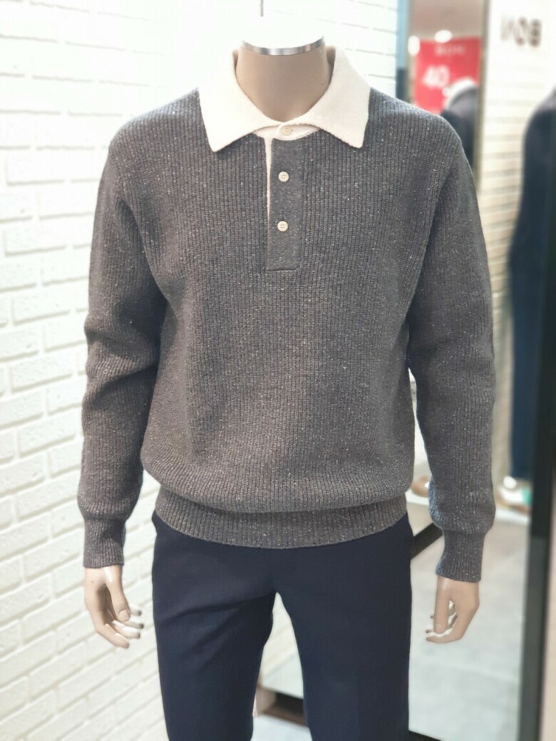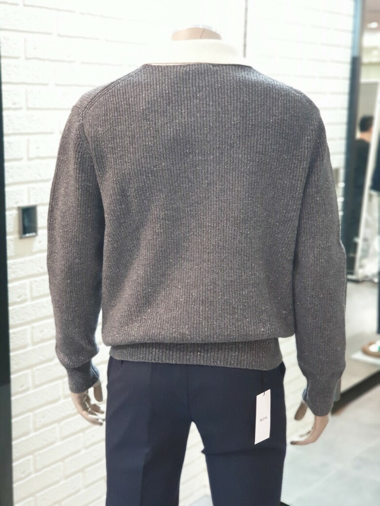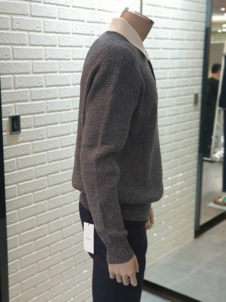 BON 24FW 그레이 실크 네프 티에리 카라배색 캐주얼 니트 BN4FSW823GY