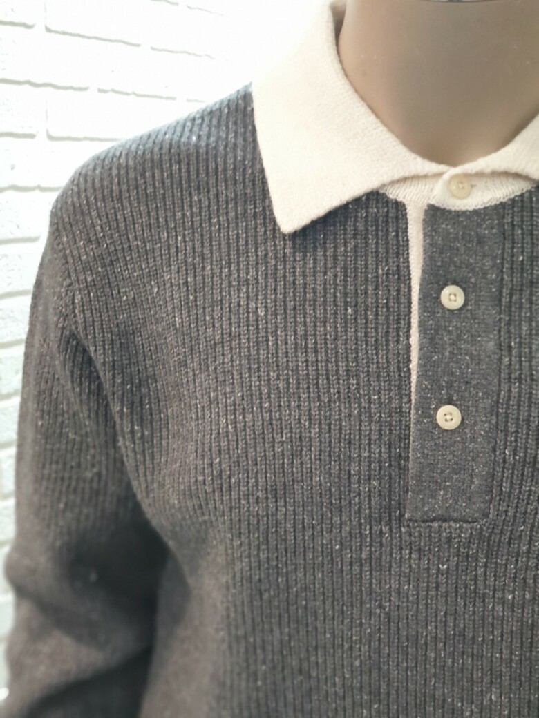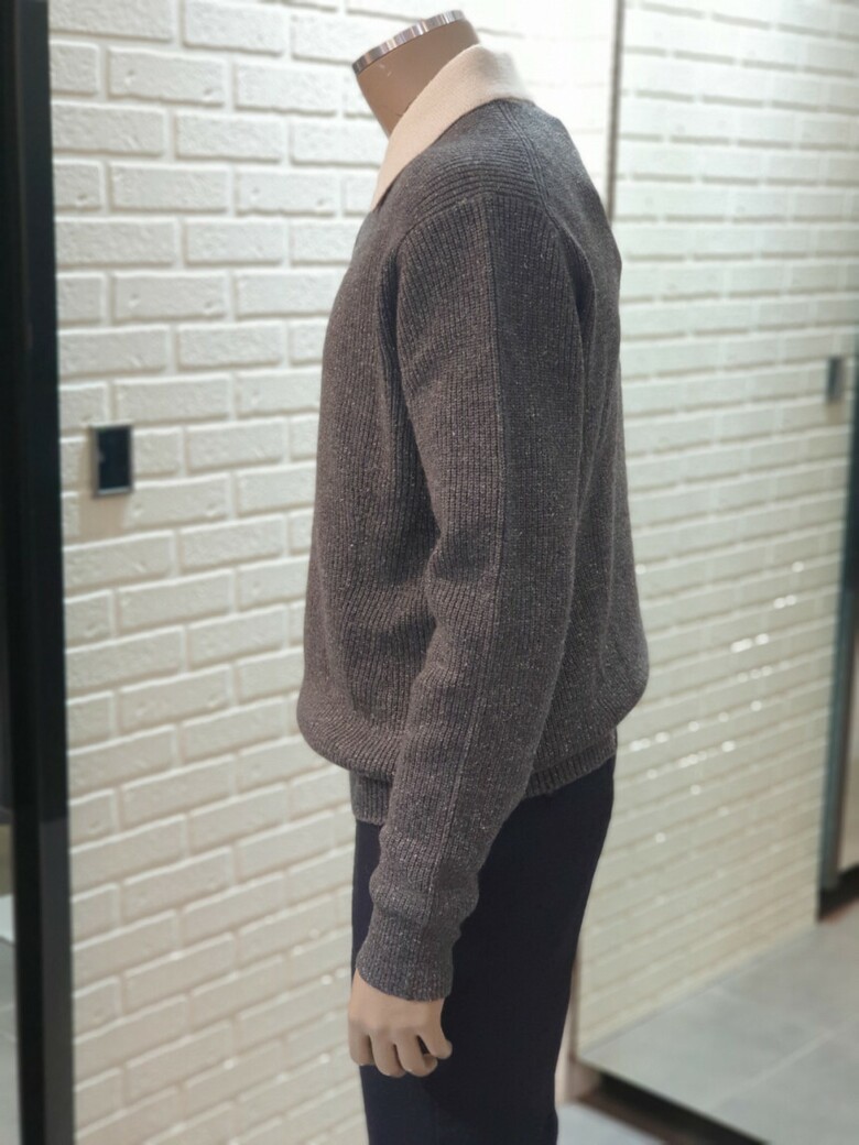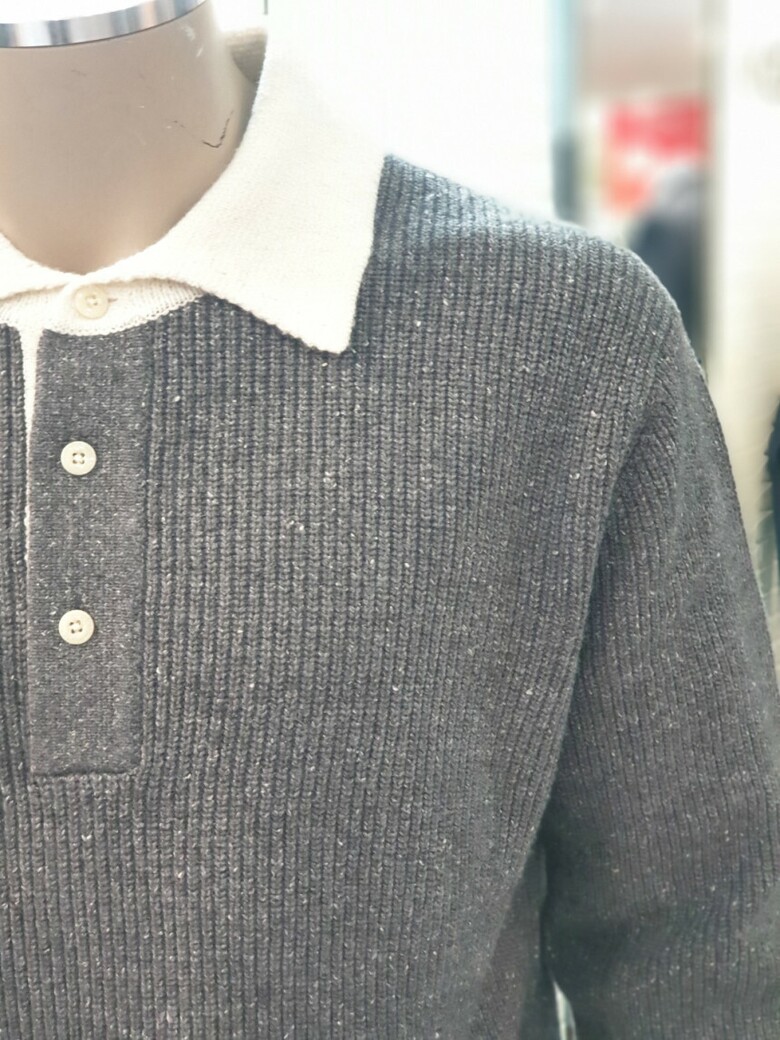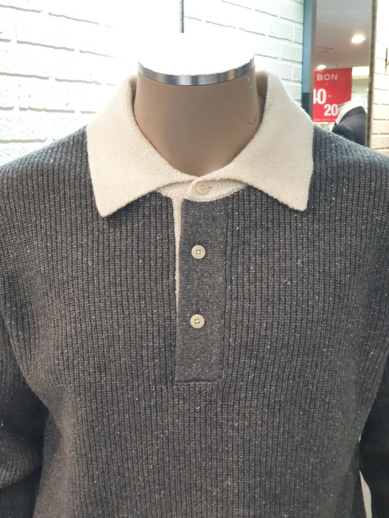 BON 24FW 그레이 실크 네프 티에리 카라배색 캐주얼 니트 BN4FSW823GY
