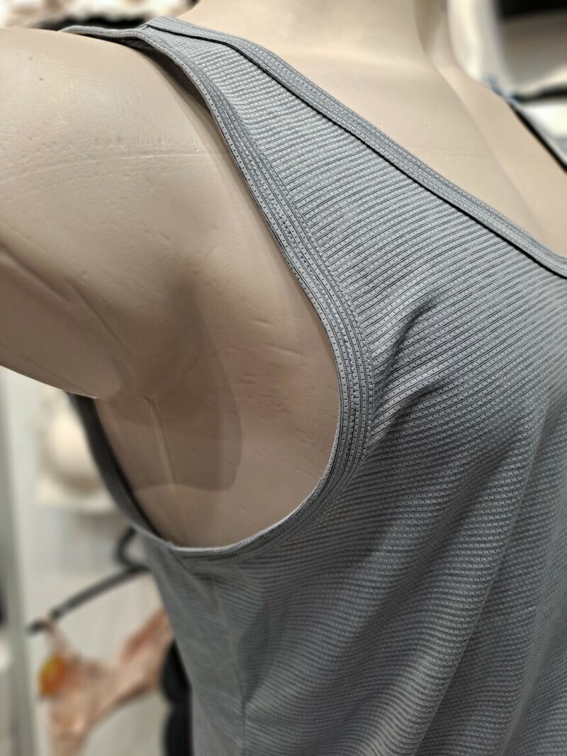 메쉬소재로 흡습속건의 기능이 있고 터치감이 부드럽고 신축성이 좋아 착용감이 우수함