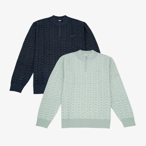 CDAAAKR3319_올오버 자카드 하프 집업 니트