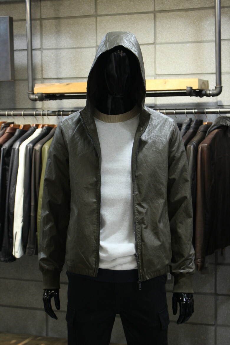 카키에코레더 인조가죽후드블루종 m-gpjp56ka