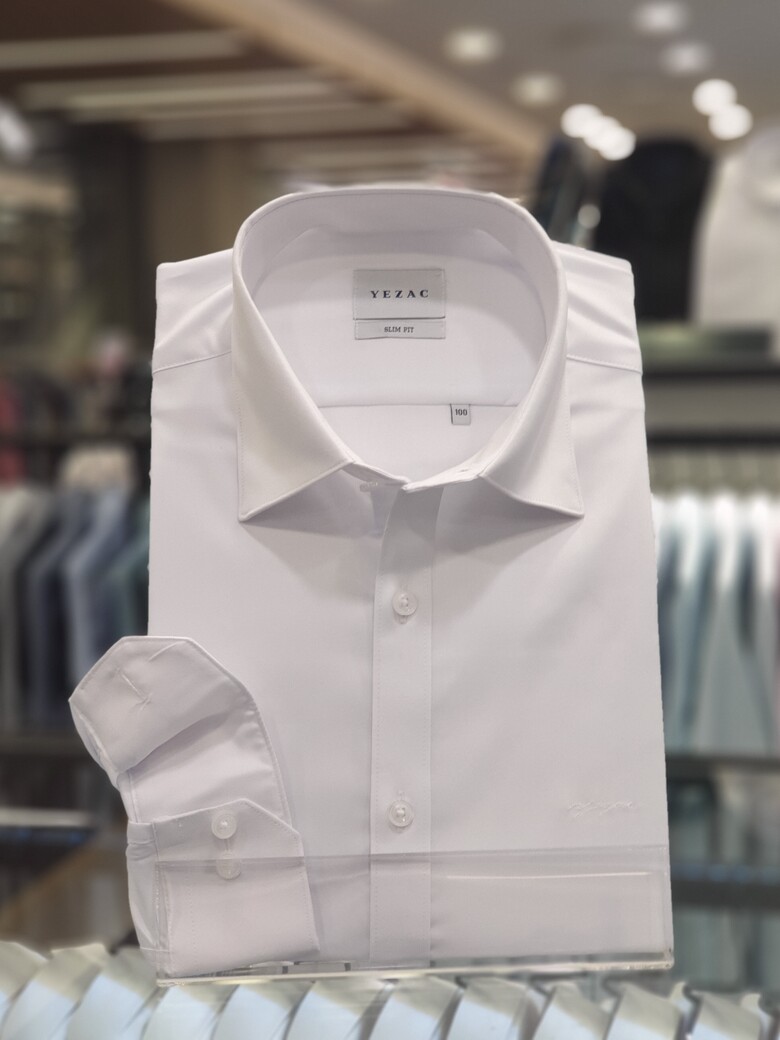 [예작셔츠] 화이트 폴리 사방스판 슬림핏셔츠 YJ4 FBS152WH