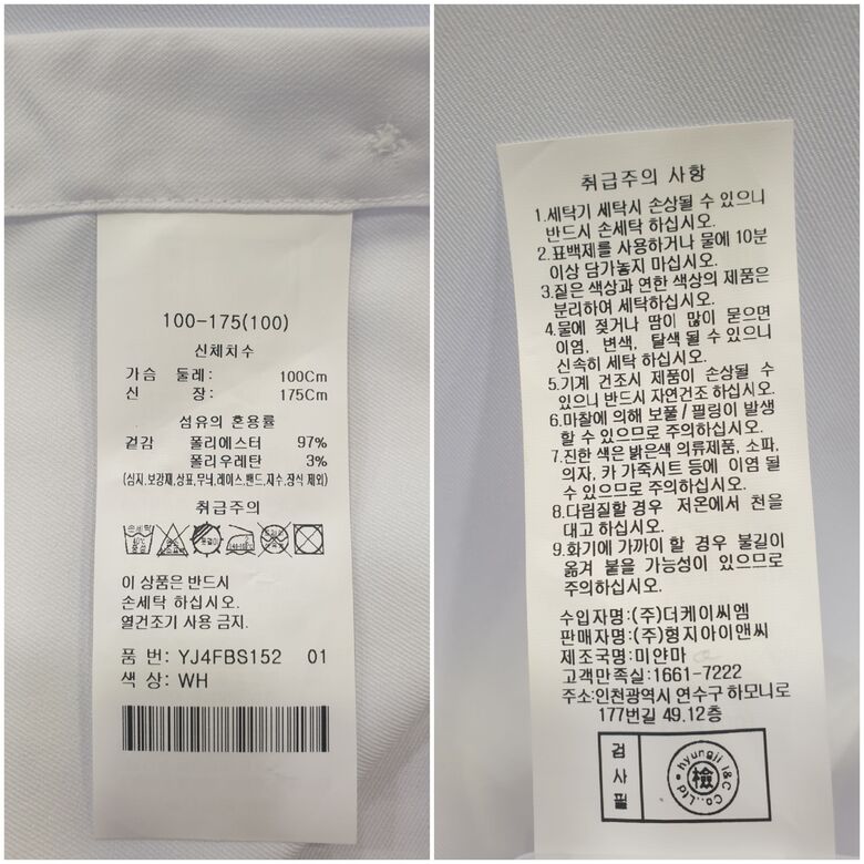 6. 세탁방법 및 취급시 주의사항 | 상품상세참조 |