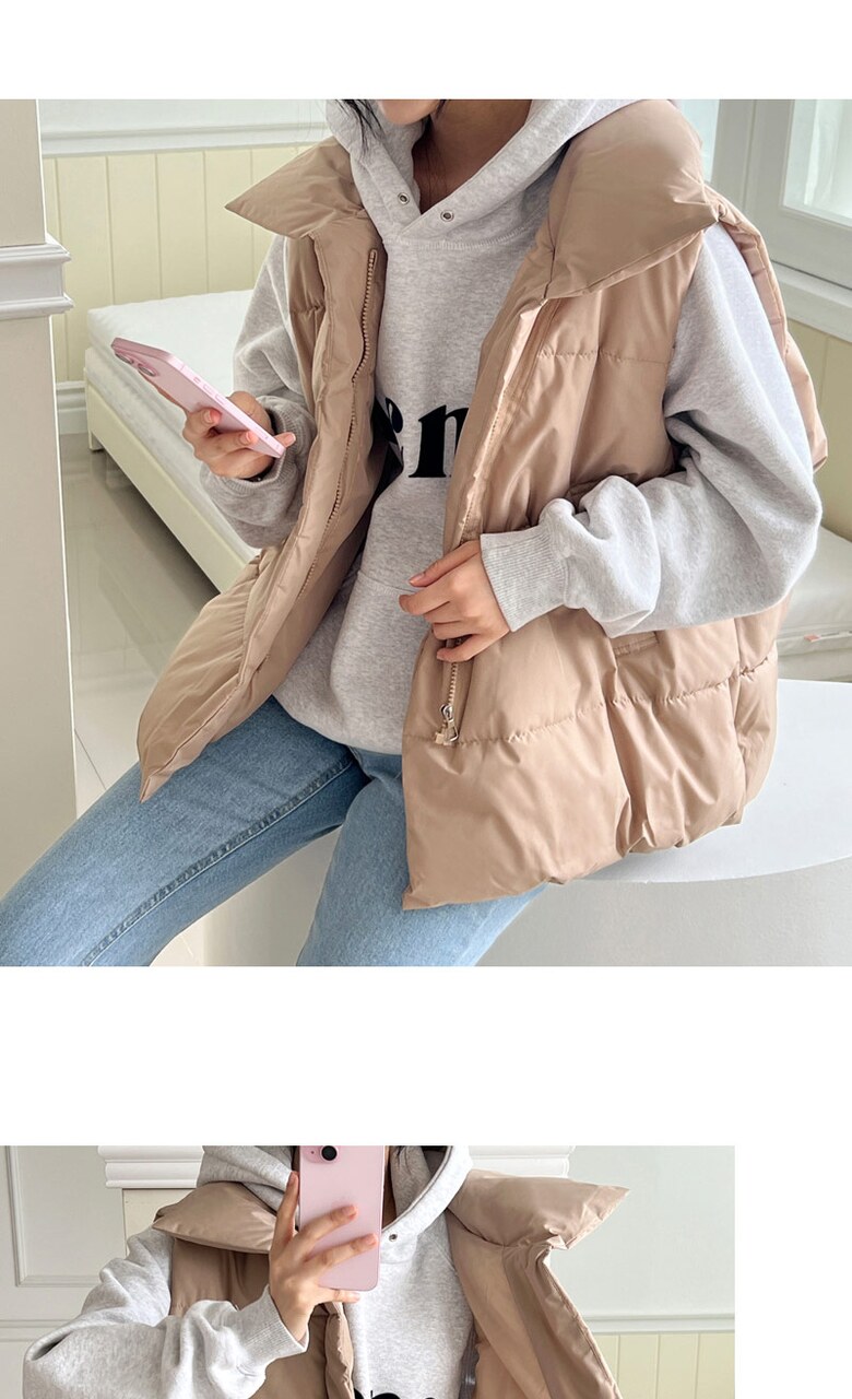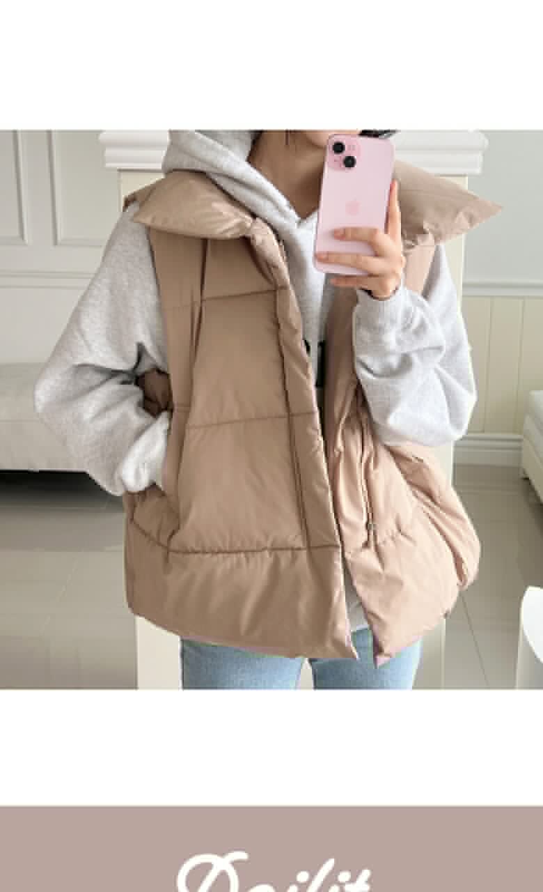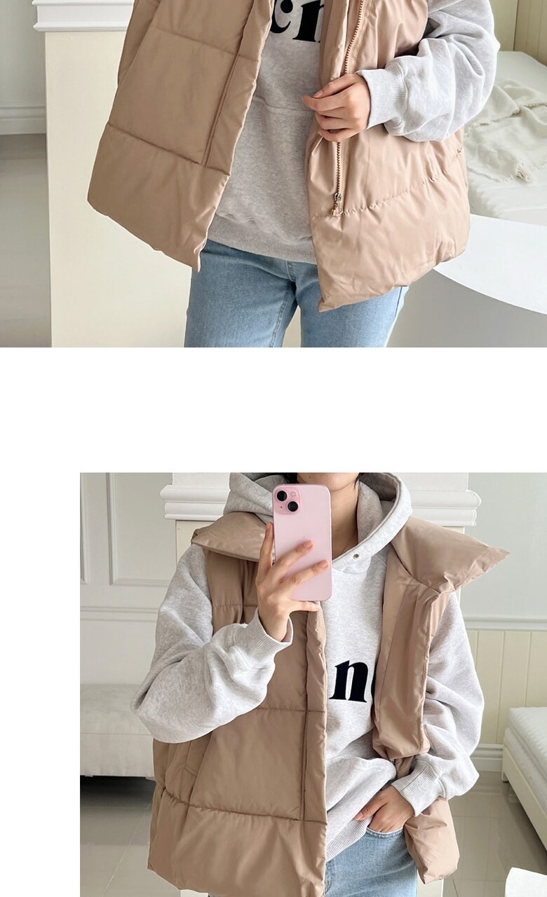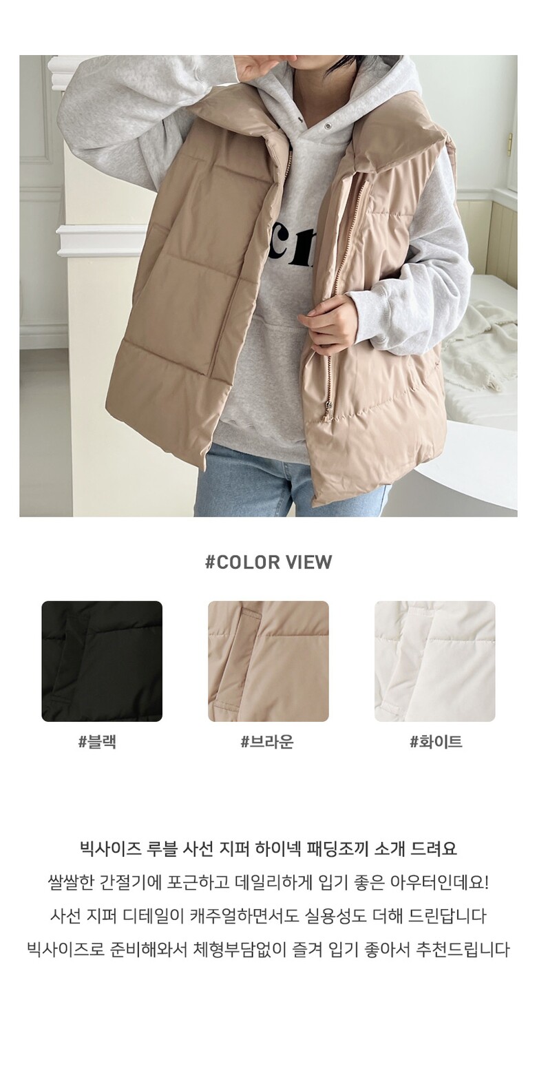 [~88까지]빅사이즈 루블 사선 지퍼 하이넥 패딩조끼