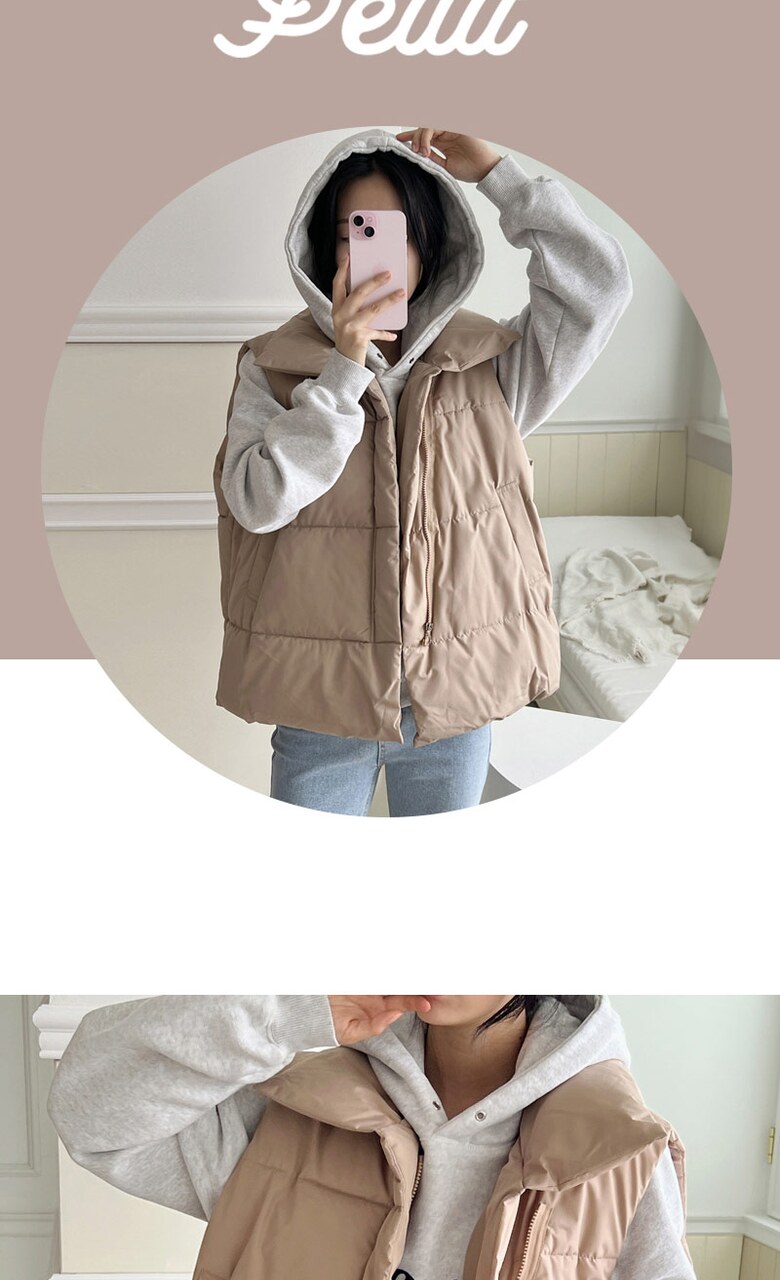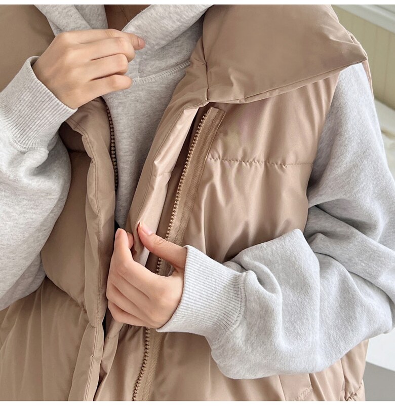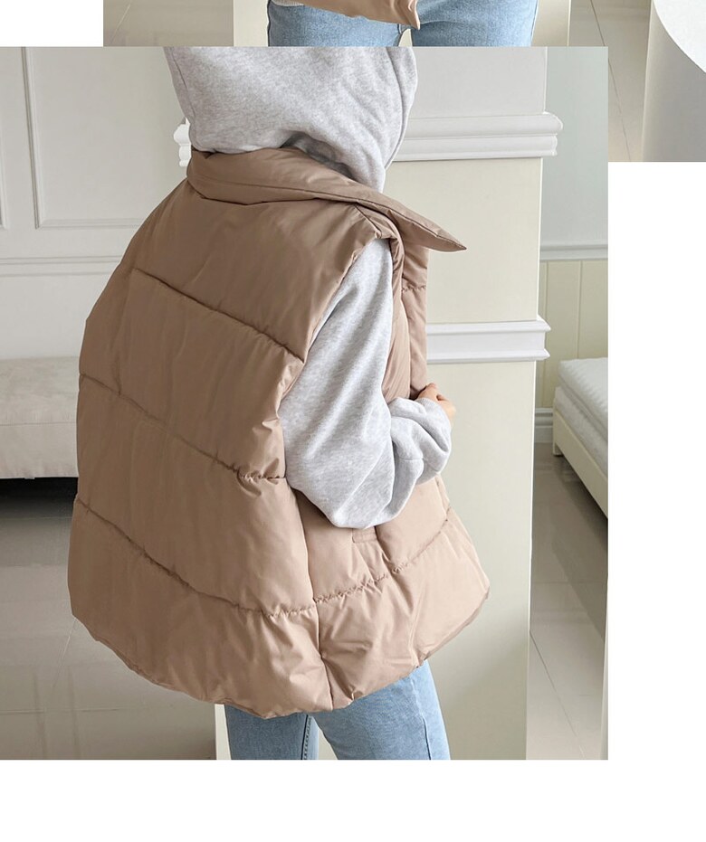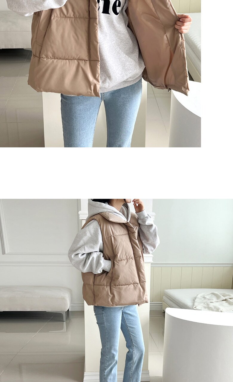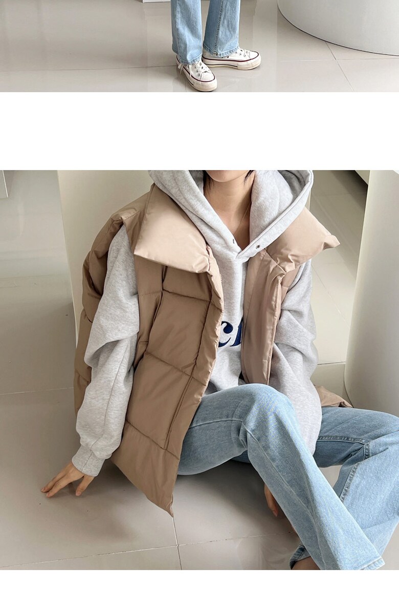 [~88까지]빅사이즈 루블 사선 지퍼 하이넥 패딩조끼