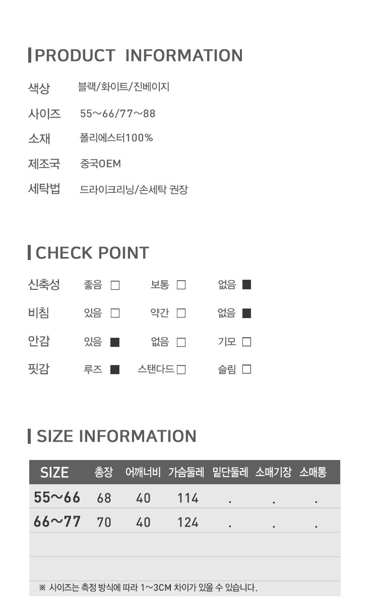 3. 치수 | 상세페이지참고 |