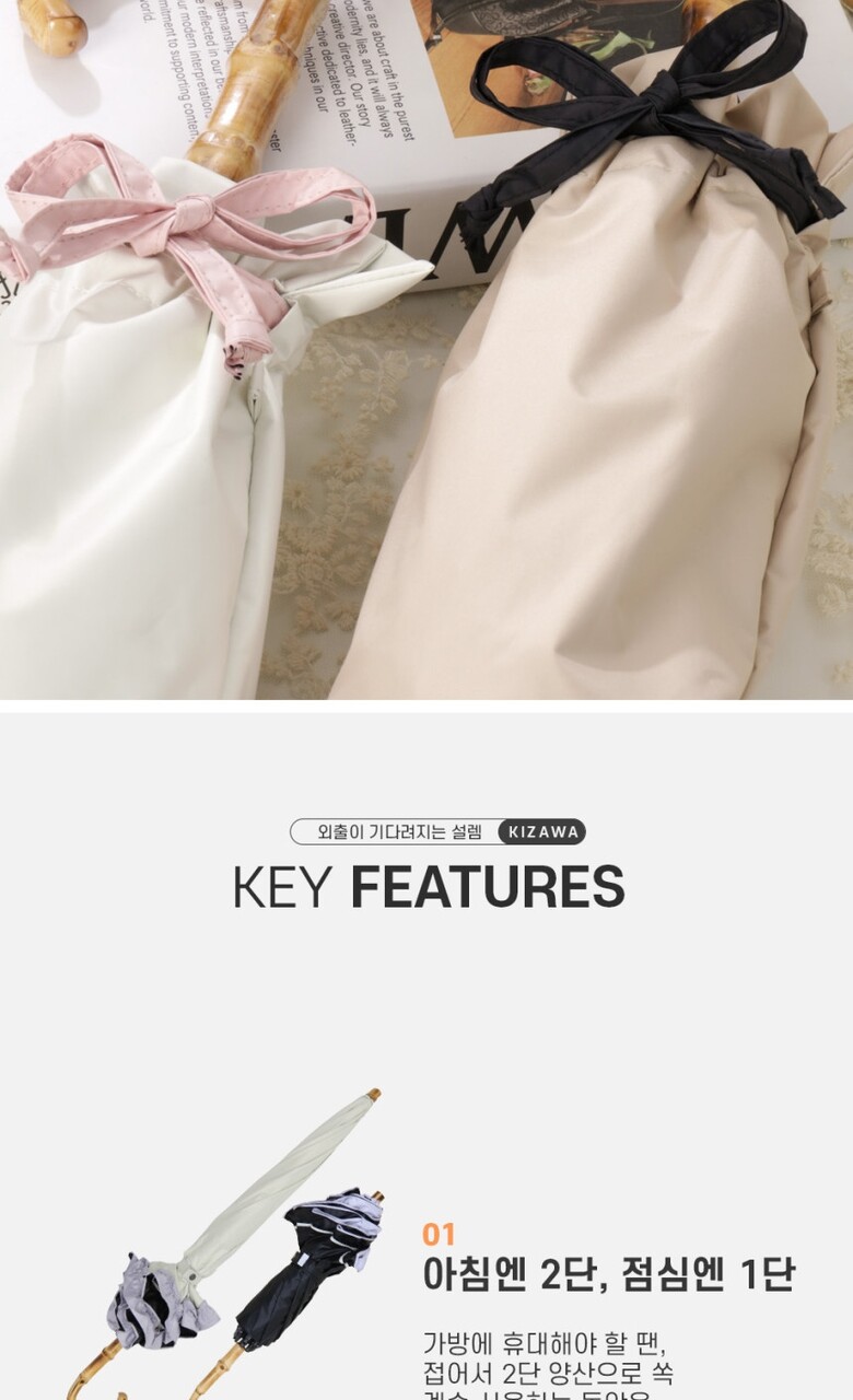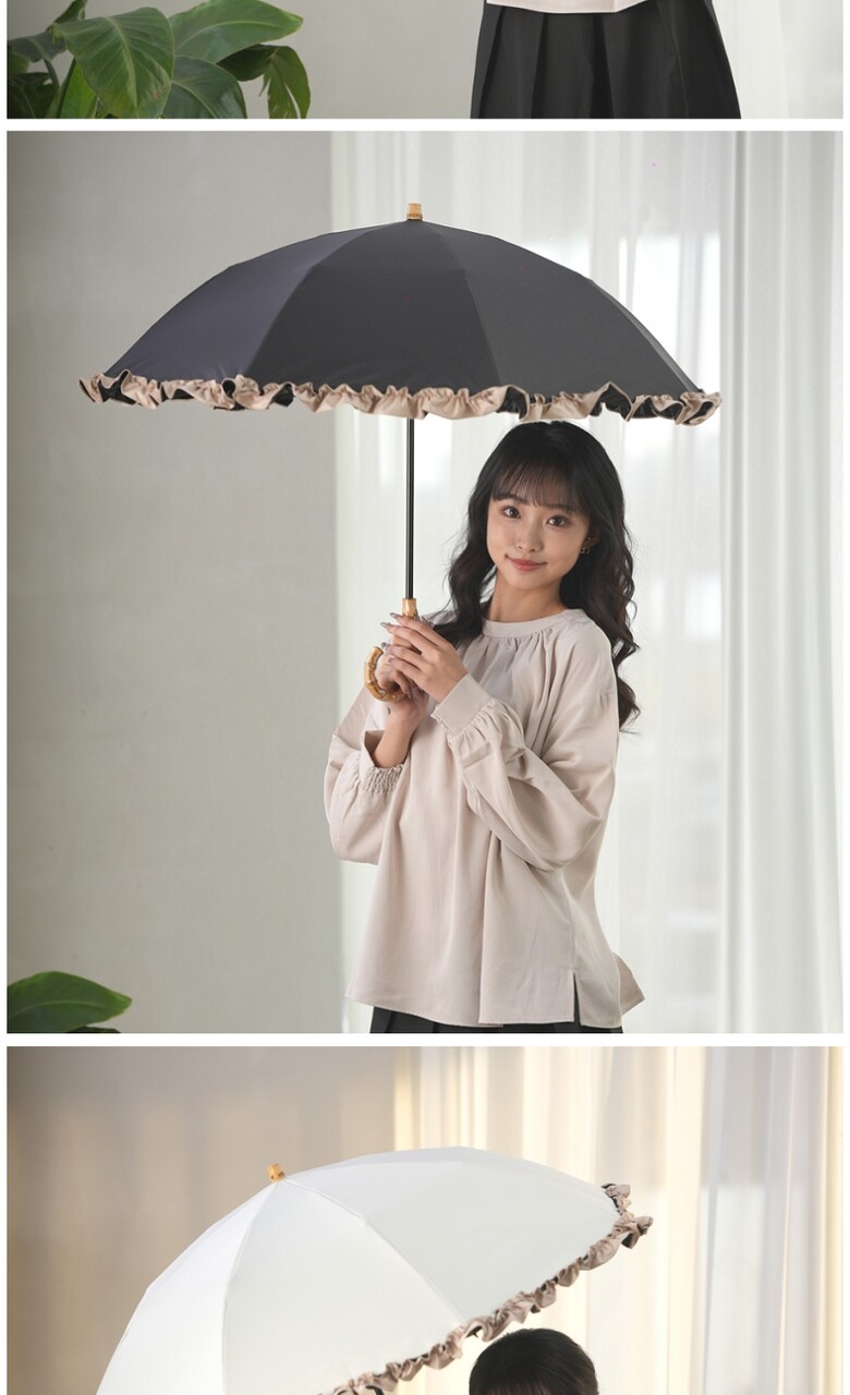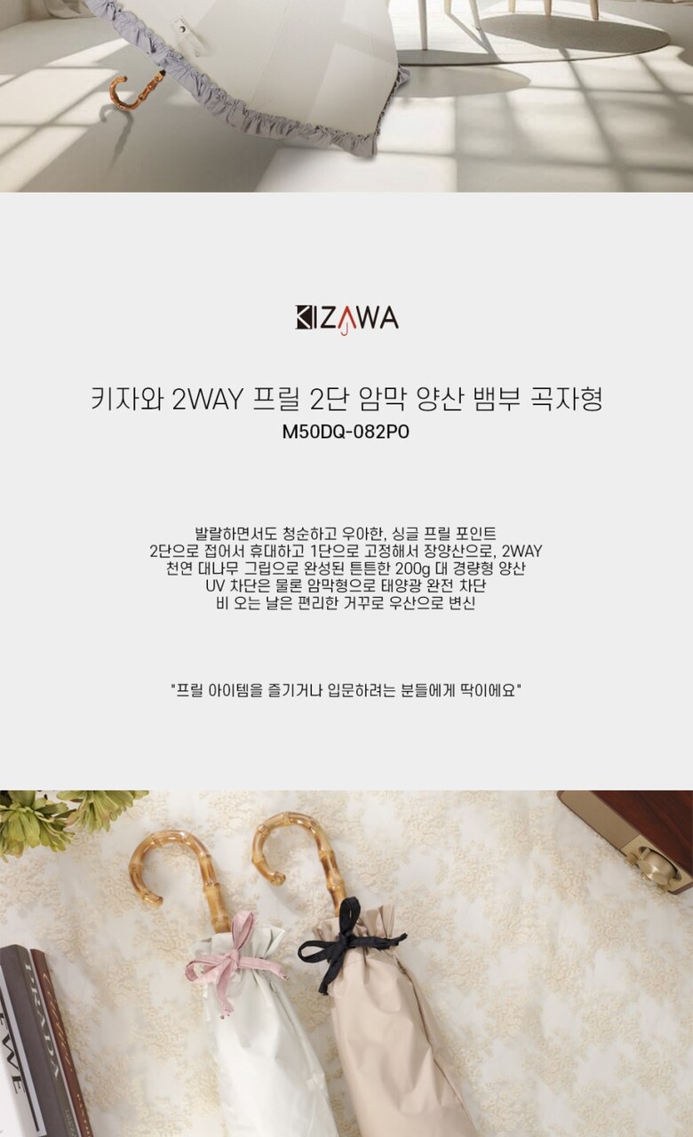키자와 2WAY 프릴 2단 암막 양산 뱀부 곡자형 M50DQ-082PO