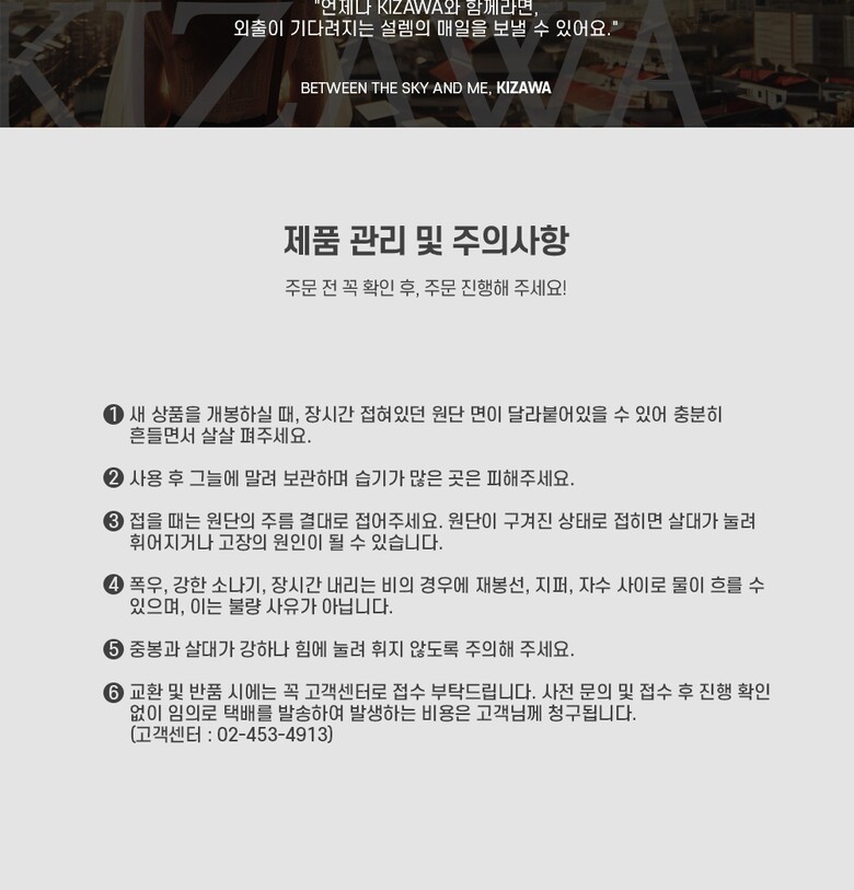 • 처음 배송된 상품상태와 다를 경우(세탁/착용 후 외출하신 경우) 반품이 불가합니다.