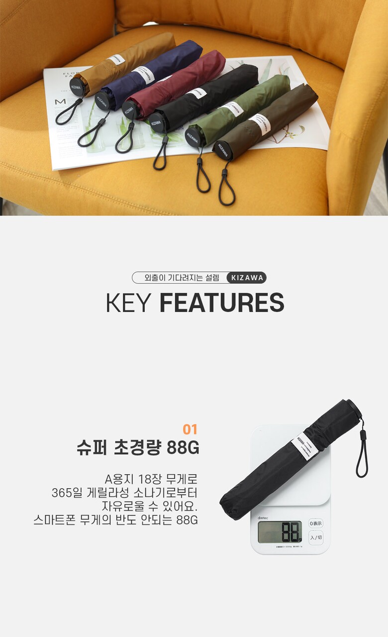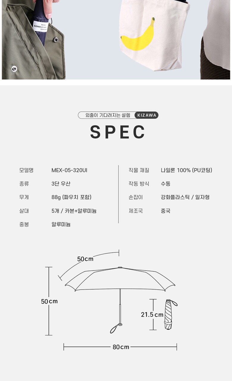 키자와 80g대 초경량 3단 우산 MEX-05-320UI