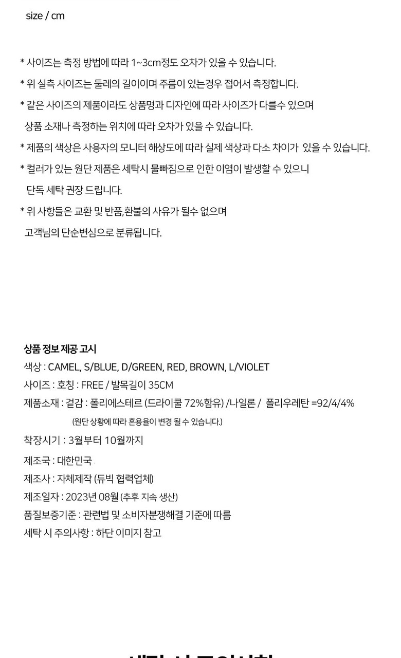 3. 치수 상품 이미지 참조