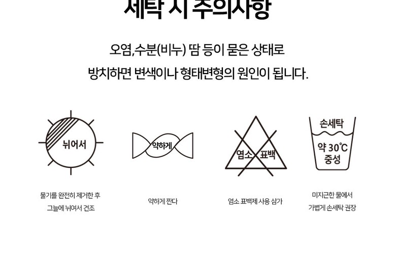 • 처음 배송된 상품상태와 다를 경우(세탁/착용 후 외출하신 경우) 반품이 불가합니다.