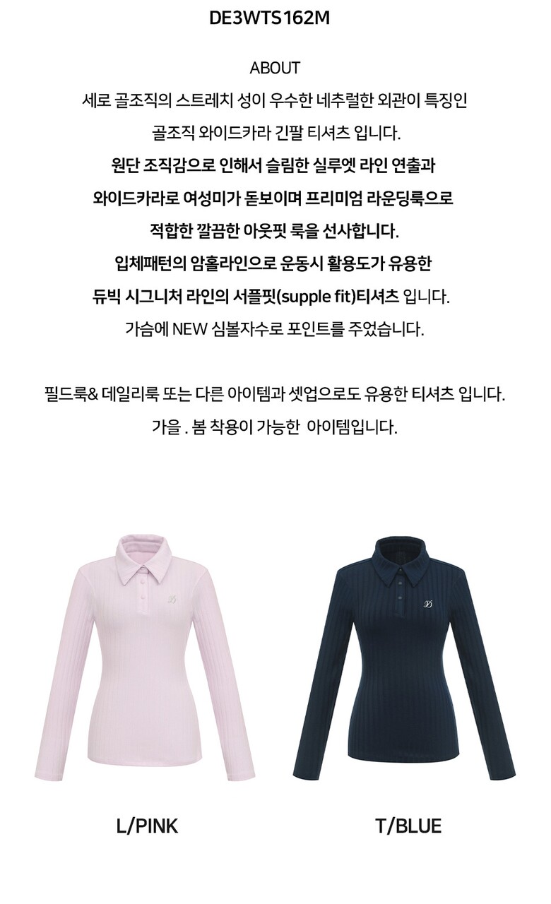 듀빅 여성 와이드카라 골조직 긴팔티셔츠 DE3WTS162