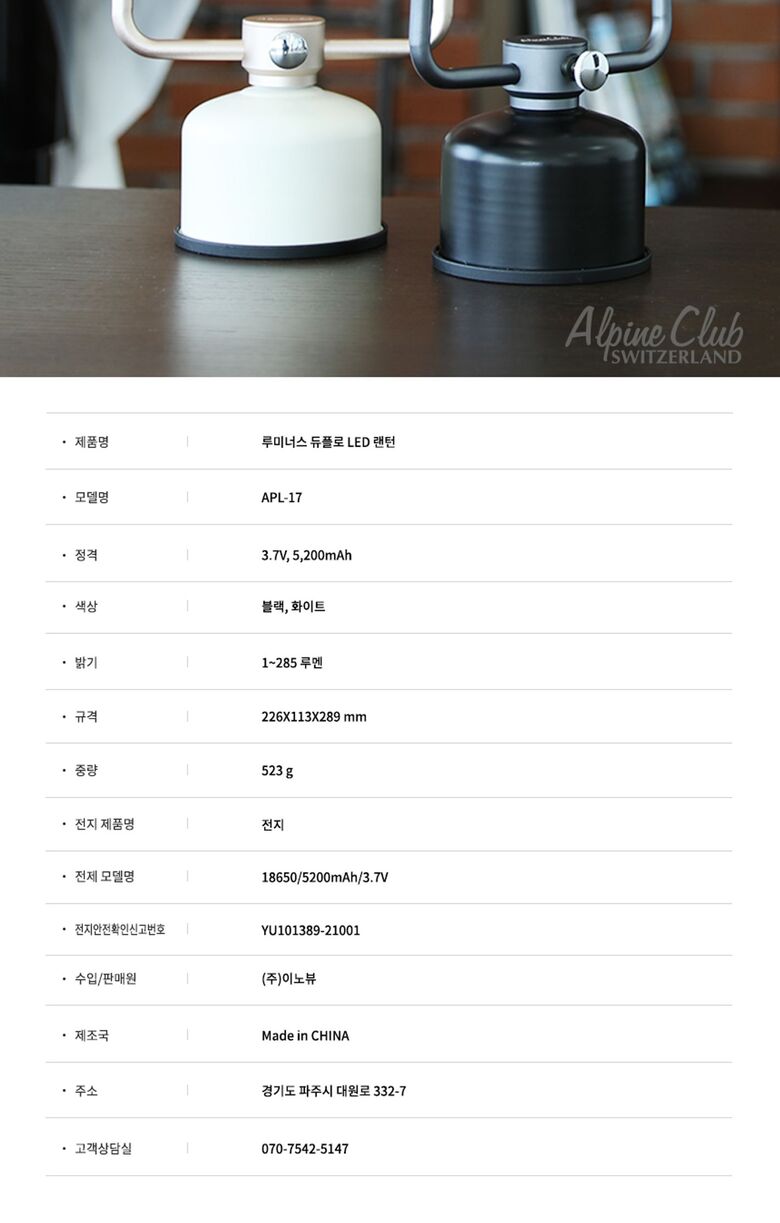 [와이즈피플즈] 스위스알파인클럽 루미너스 듀플로 LED 랜턴 APL-17