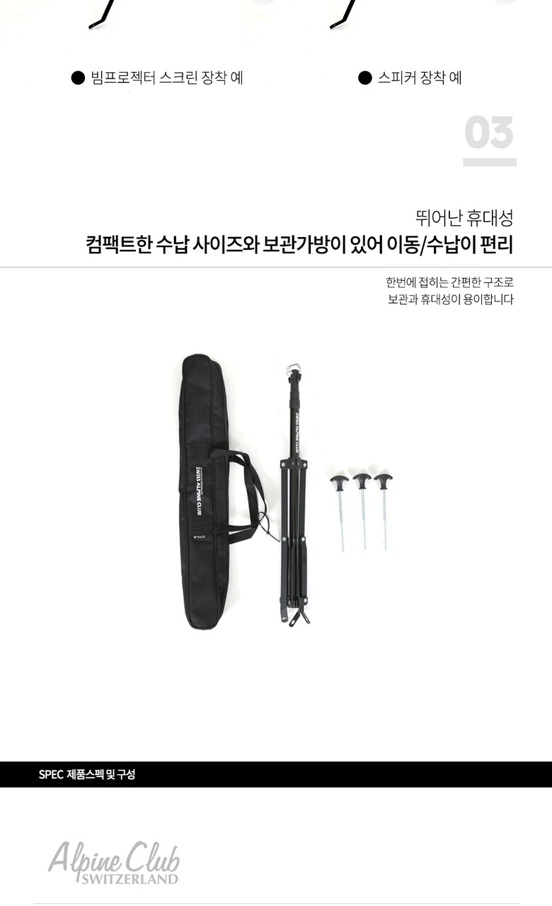2. 크기, 중량 | 수납 : 68 X 7cm / 1.65kg 설치 : 194 X 35cm |