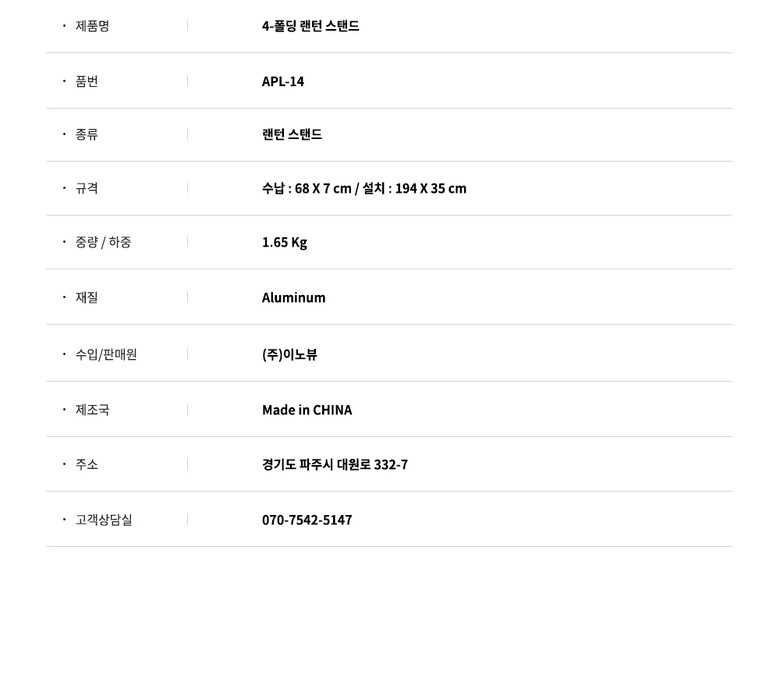 1. 품명 및 모델명 | 4-폴딩 랜턴 스탠드 |