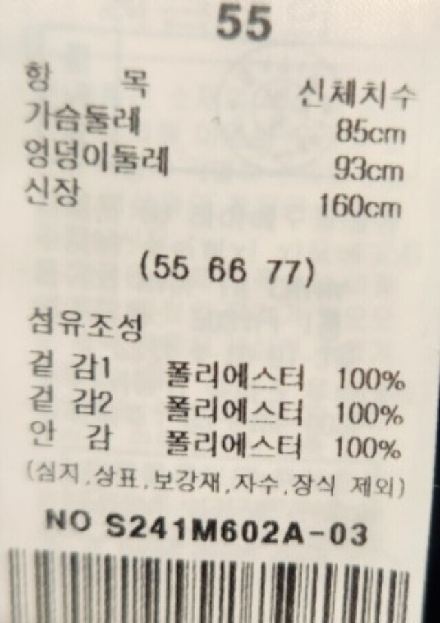 • 처음 배송된 상품상태와 다를 경우(세탁/착용 후 외출하신 경우) 반품이 불가합니다.