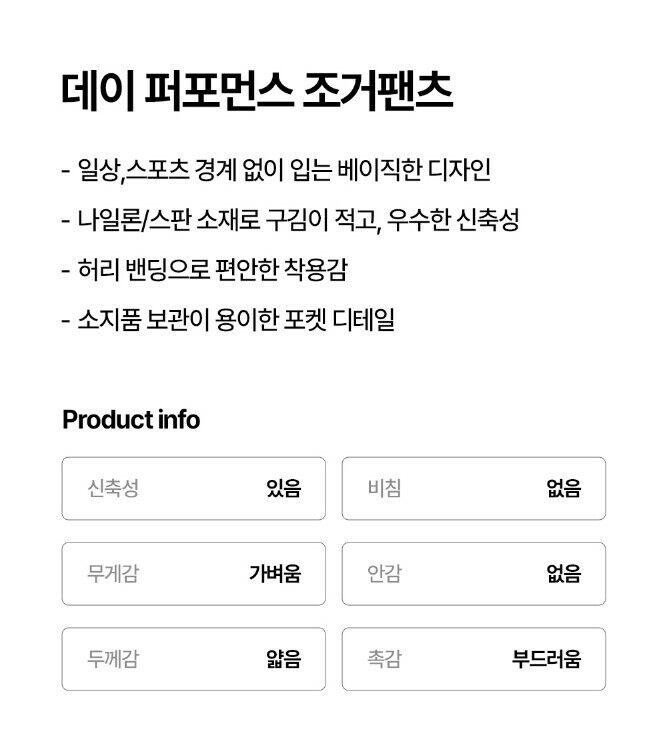 | 1. 제품 소재 (섬유의 조성 또는 혼용률을 백분율로 표시, 기능성인 경우 성적서 또는 허가서) | 상품상세참조 |
