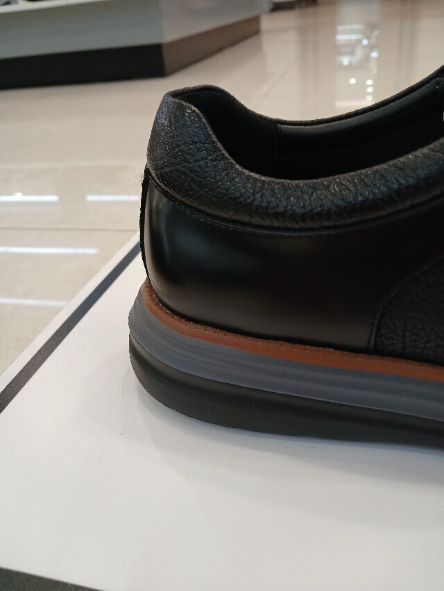 굽높이 약3cm의 높이에 천연소가죽80% 코팅소가죽20%소재를 특수공법으로 가공처리하여 제작된 남성 비즈니스캐쥬얼화입니다