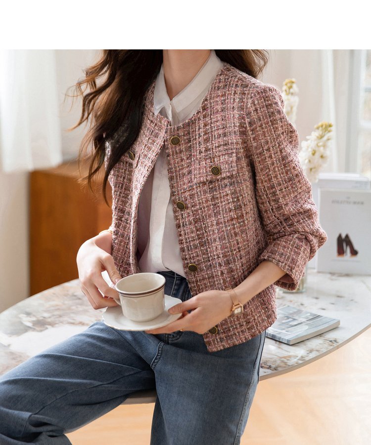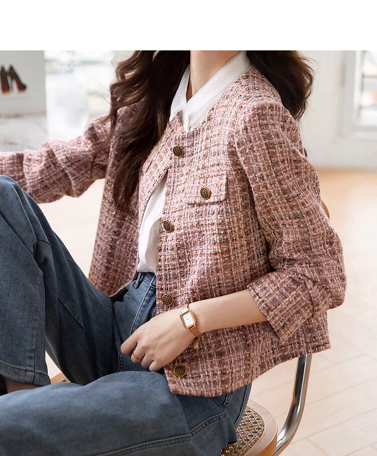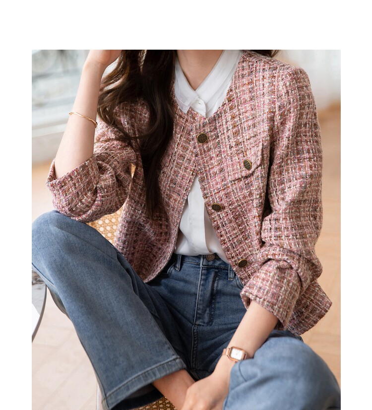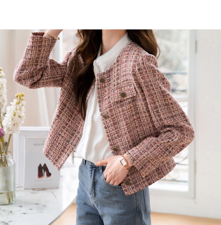 첼드 클래식 핑크 트위드 자켓_240901_HN049