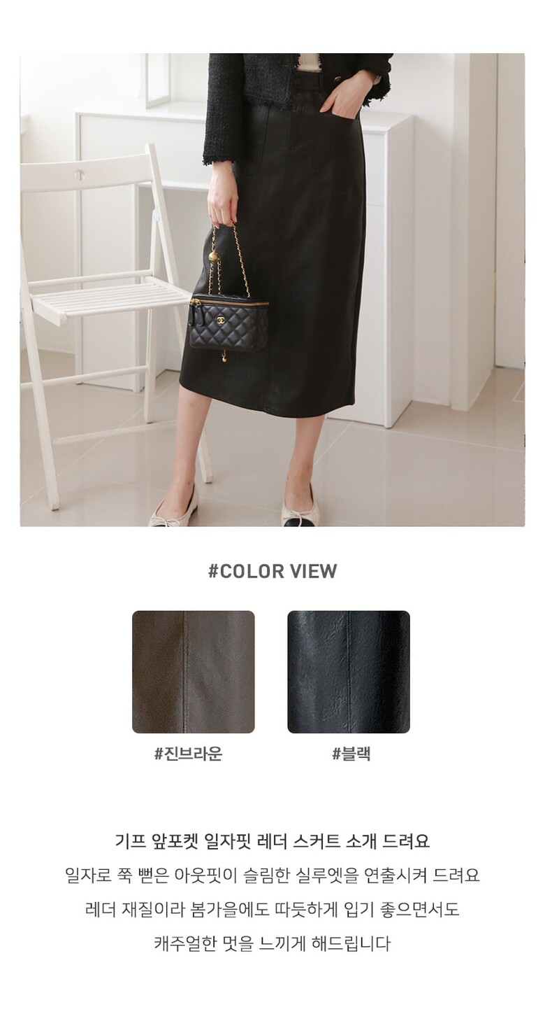 [~77까지]기프 앞포켓 일자핏 레더 스커트