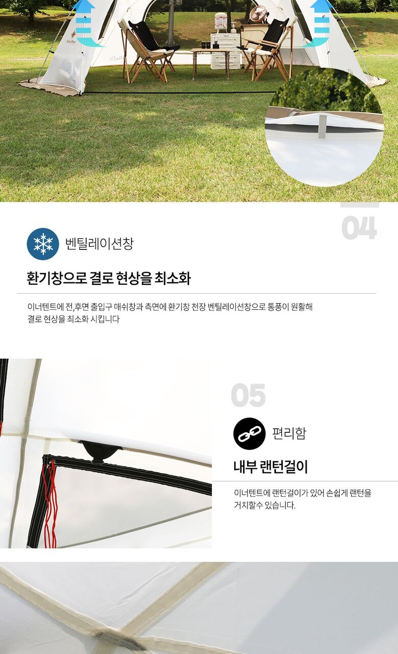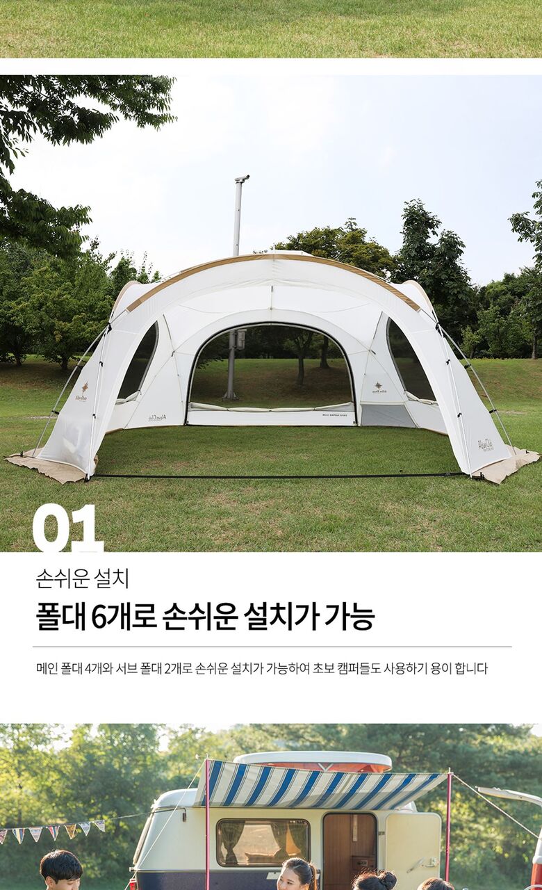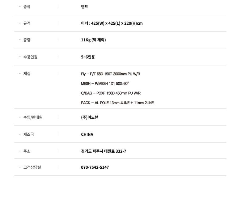 5. 제품 구성 | 쉘터, 루프 , 폴대, 팩, 스트링, 보관가방 |