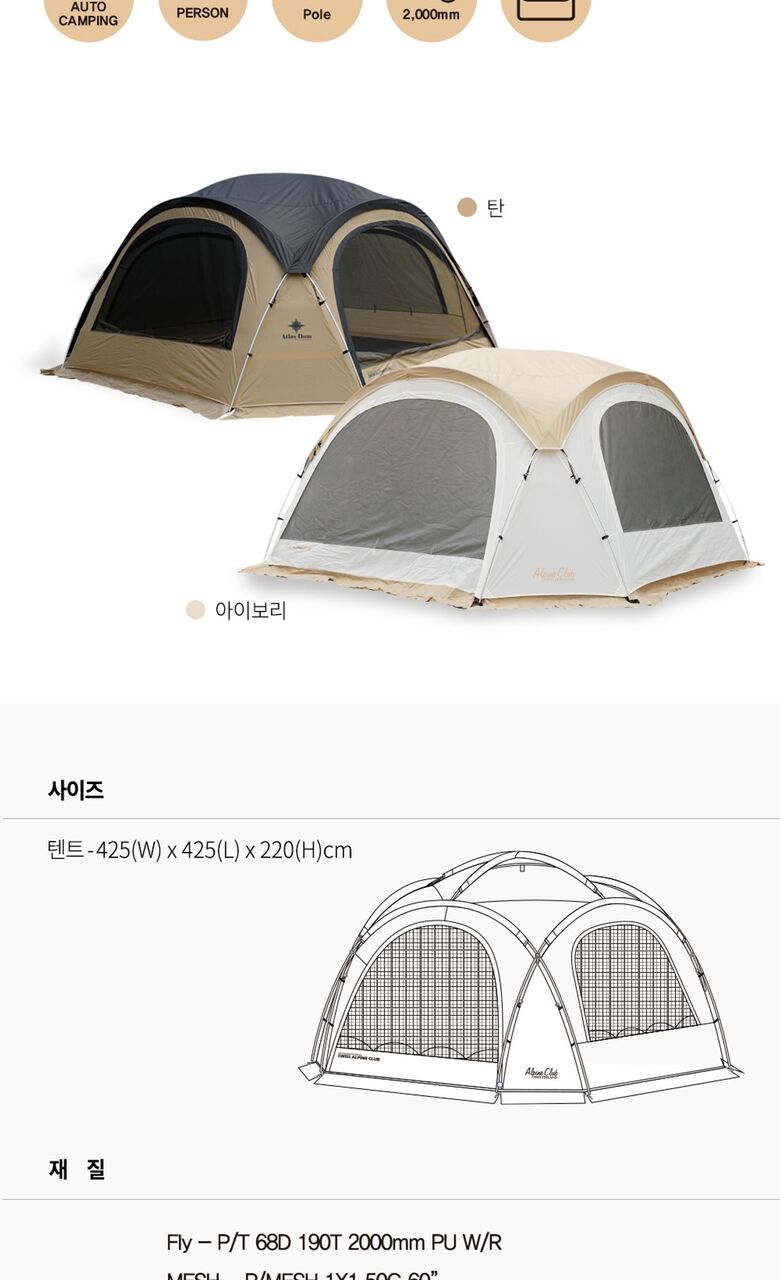 스위스알파인클럽 아틀라스 돔 쉘터 ACT-26 ACT-01TAN
