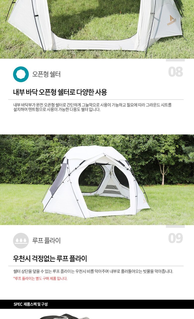 5. 제품 구성 쉘터, 폴대, 그라운드시트, 수납가방, 팩, 스트링