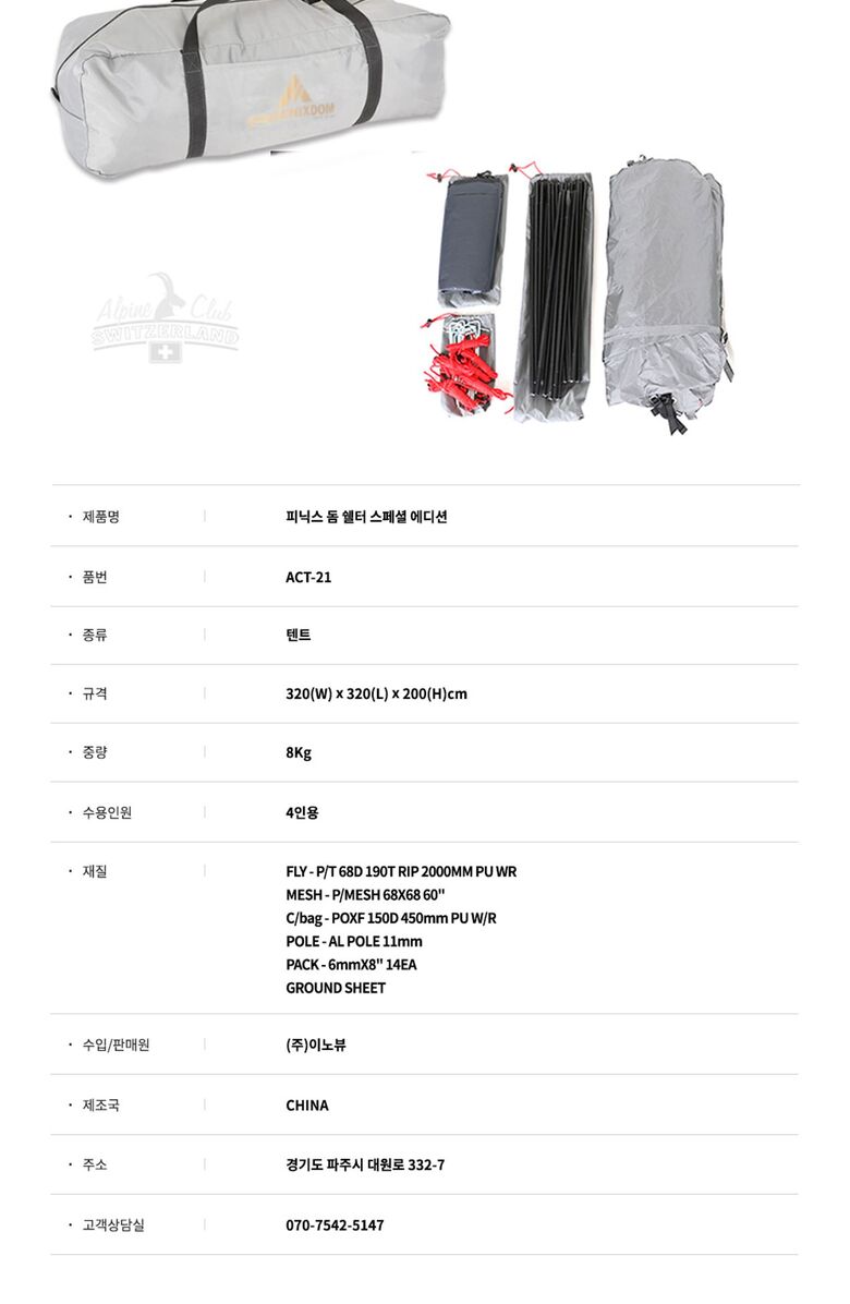 1. 품명 및 모델명 퍼닉스 돔 쉘터 스페셜 에디션 ACT-21