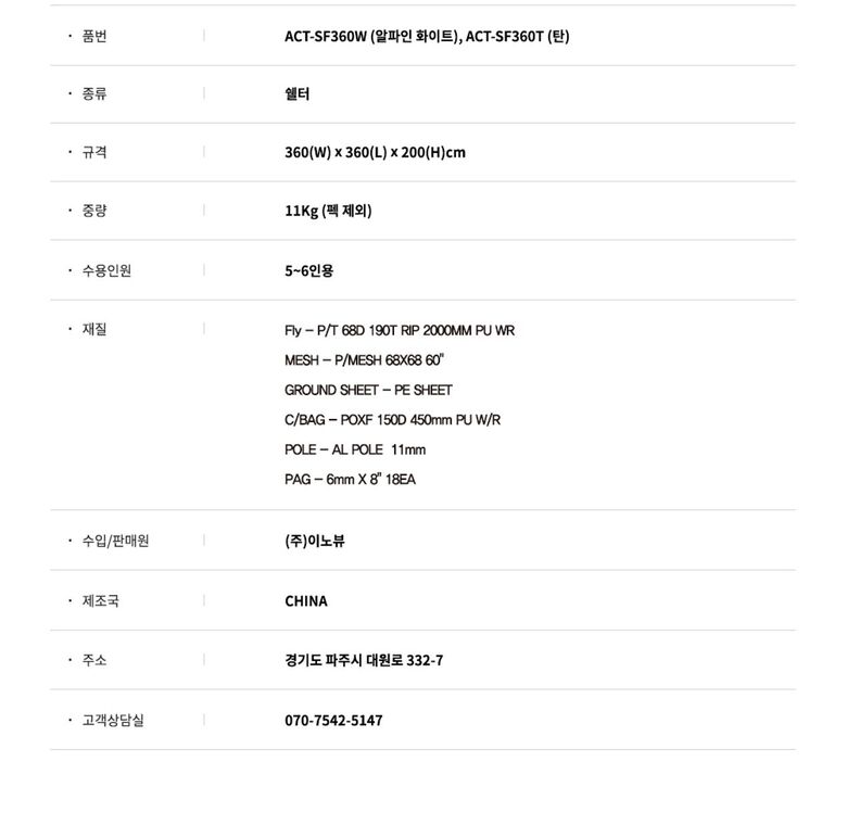 1. 품명 및 모델명 | 뉴 슈퍼 플렉스 돔 쉘터 ACT-SF360W, ACT-SF360T |