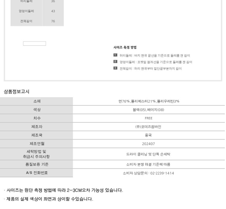 2. 색상 | 블랙(05),베이지(08) |
