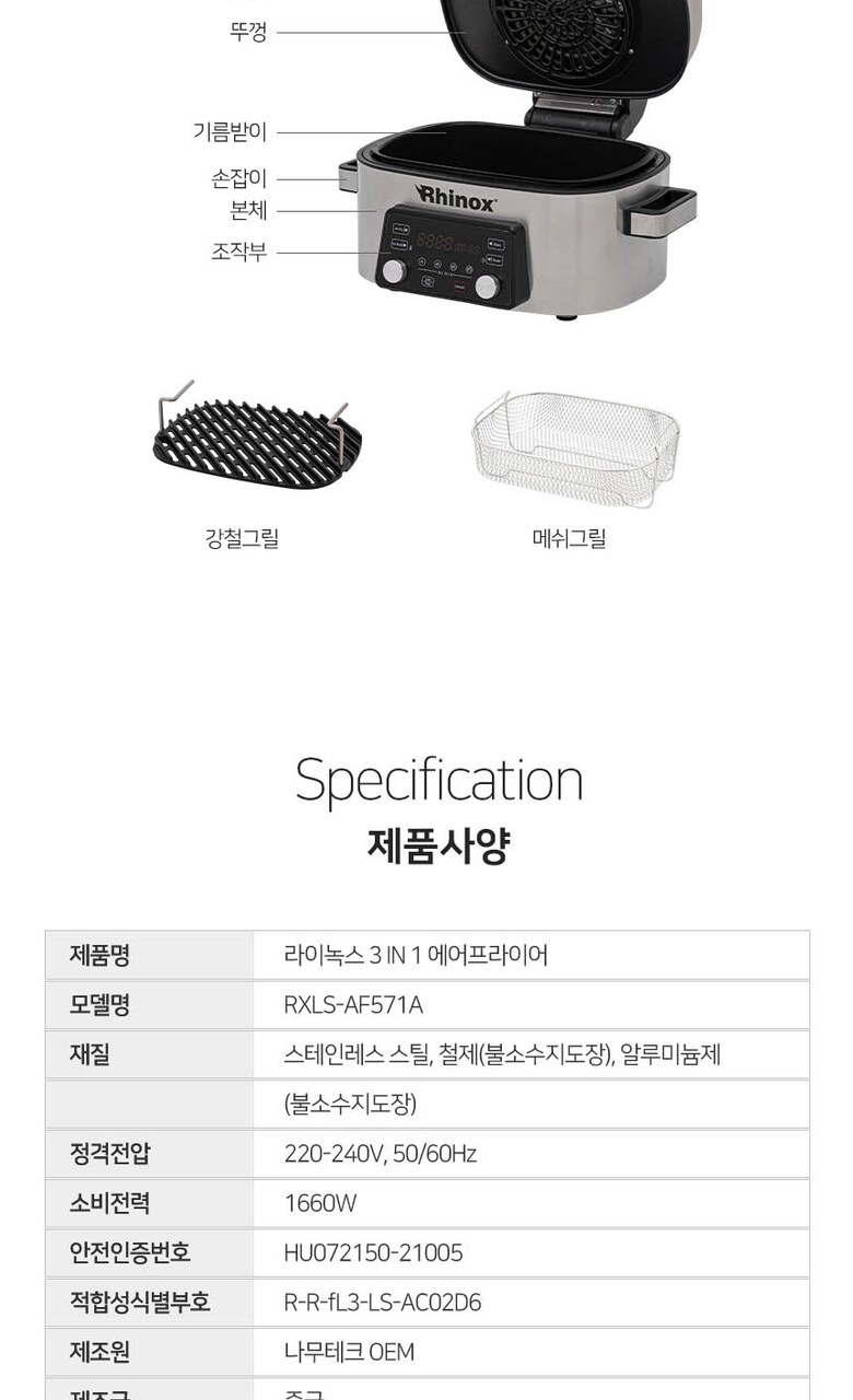 [라이녹스] 멀티그릴 에어프라이어 RXLS-AF571A