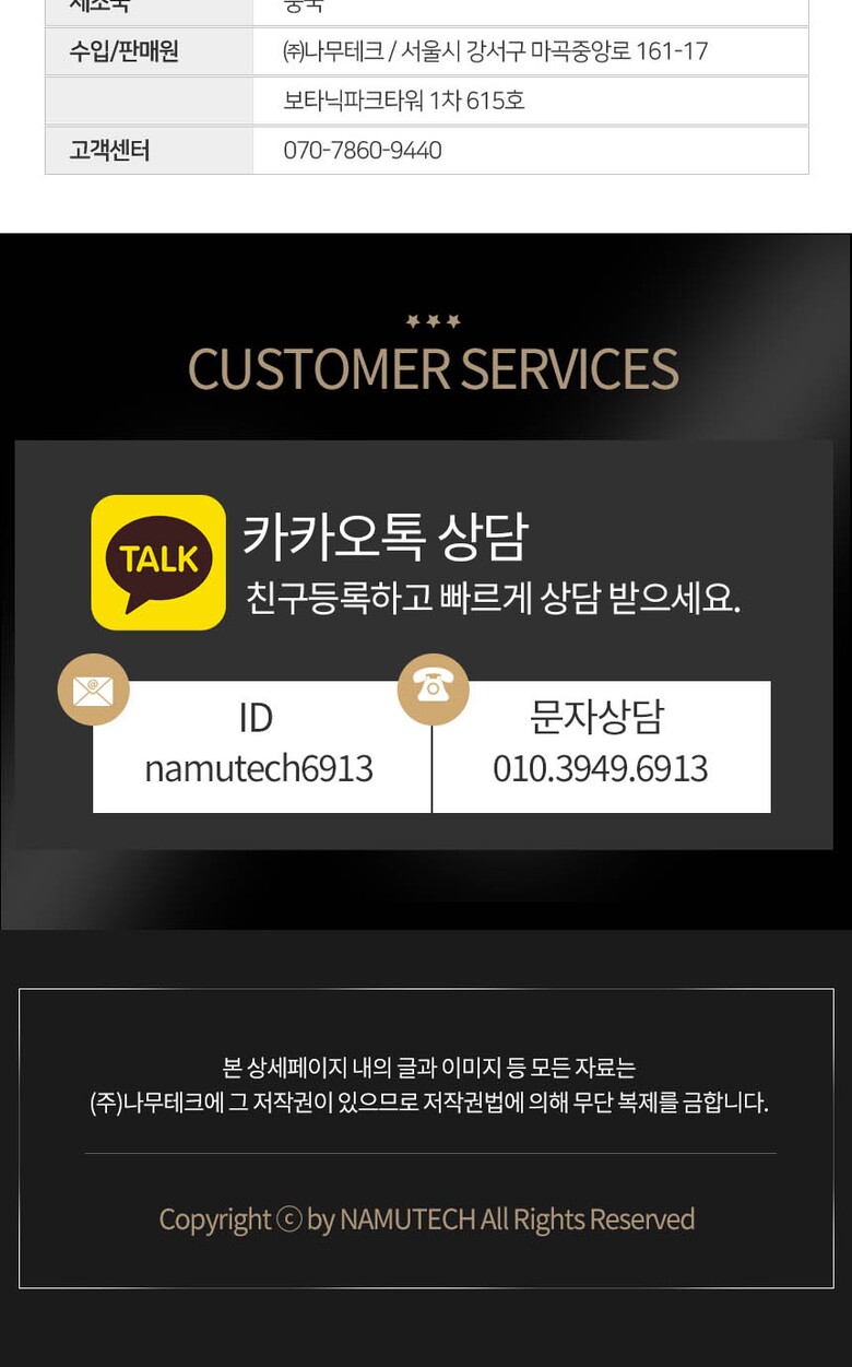8. 제조사(수입자) | 상세페이지 참조 |