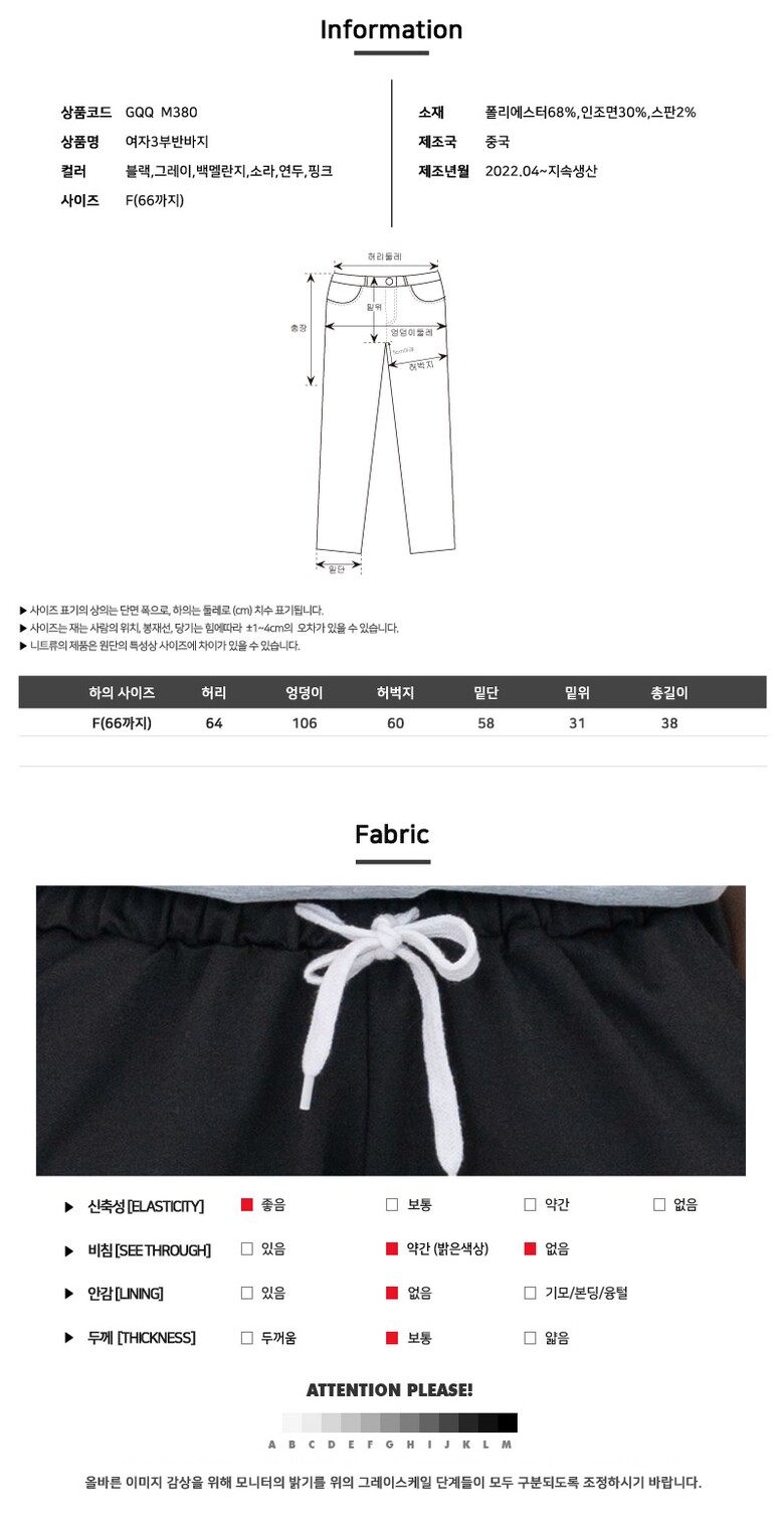 [1+1] 여자 3부 반바지 여성 데일리 팬츠