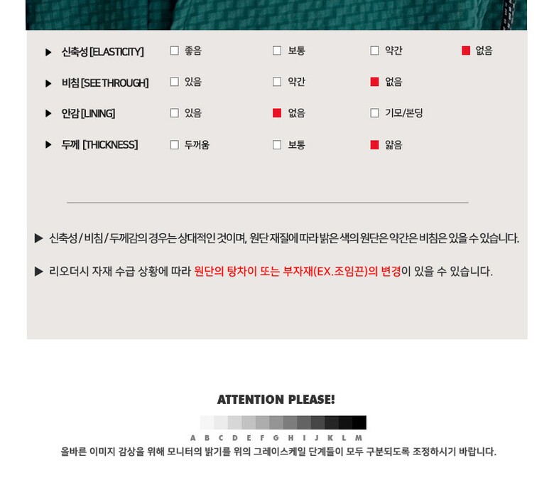 1. 제품 소재 (섬유의 조성 또는 혼용률을 백분율로 표시, 기능성인 경우 성적서 또는 허가서) 상세설명참고