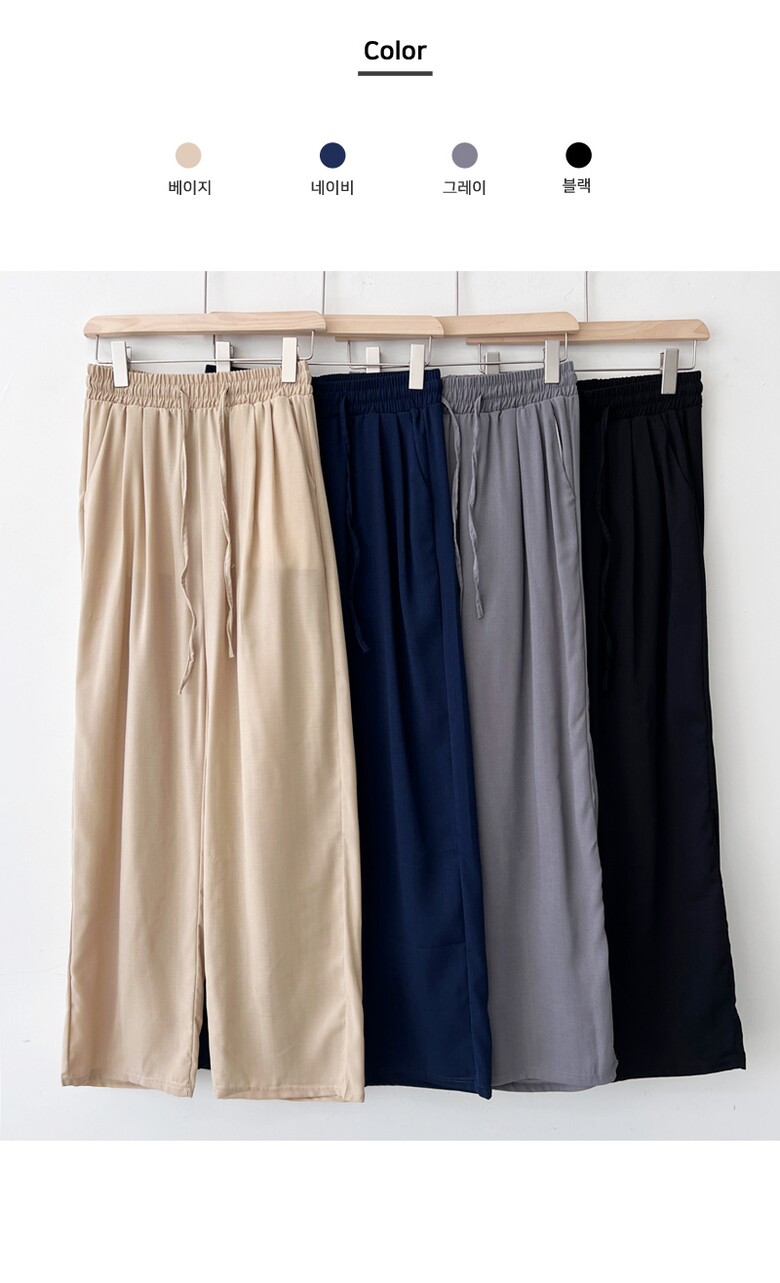 여자 퓨어 린넨 핀턱 와이드 팬츠 여성 바지