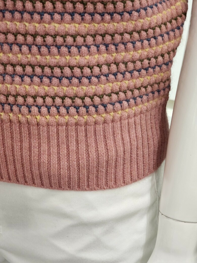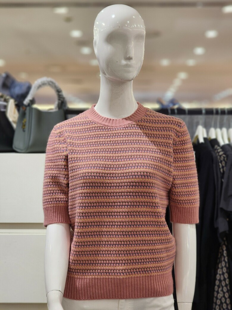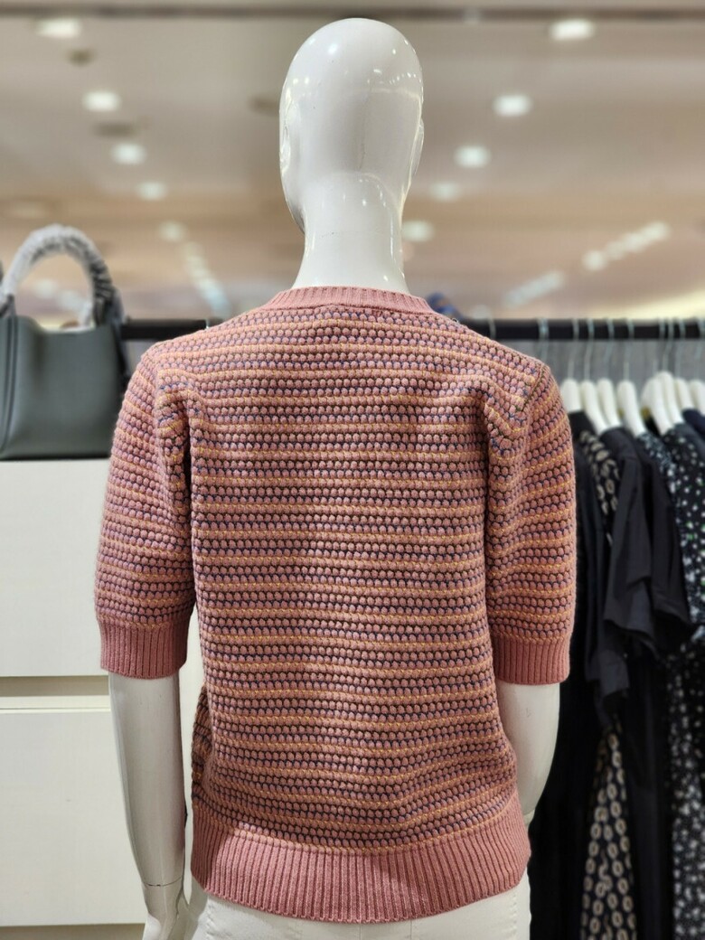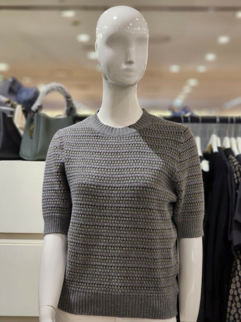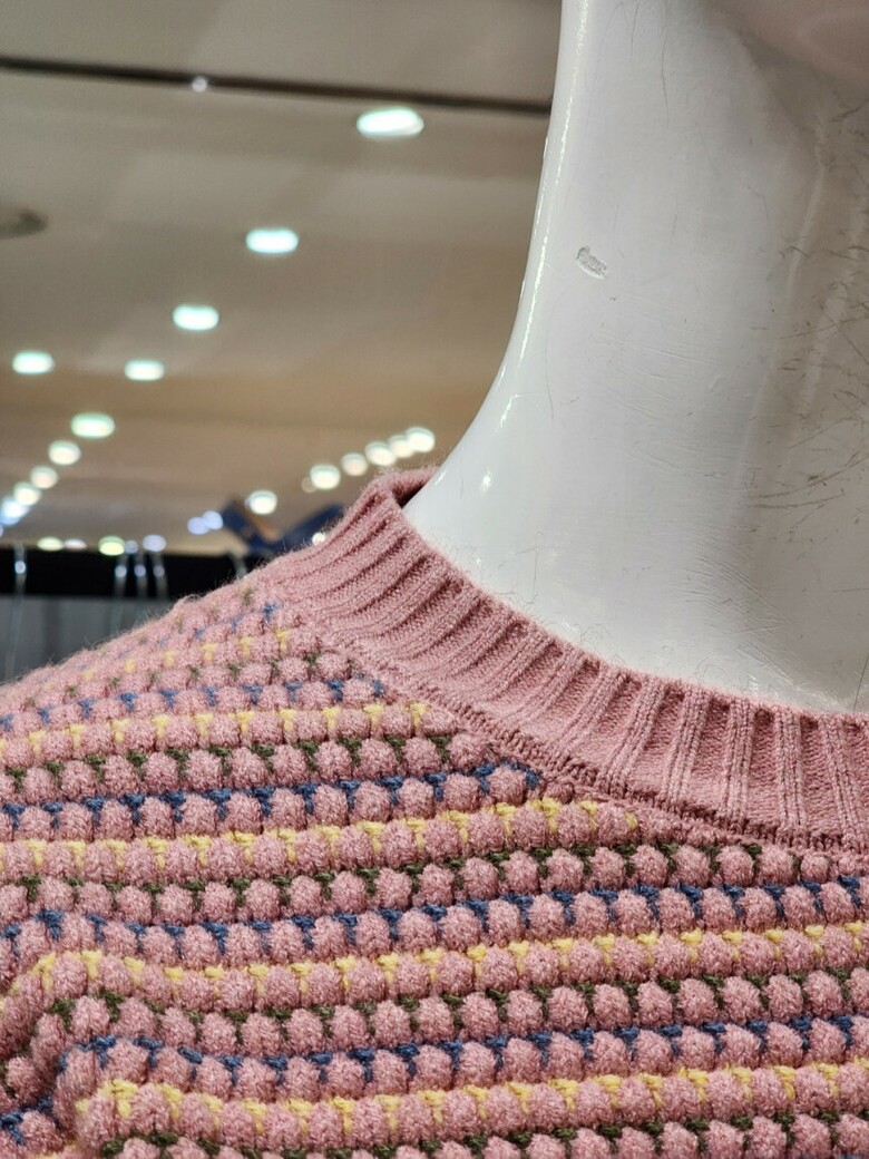 라운드넥라인에 잔패턴이 있는 니트입니다
