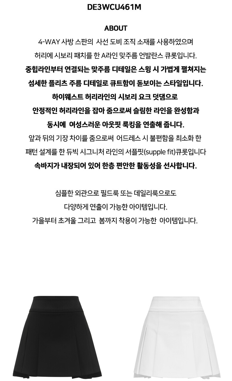 듀빅 여성 맞주름 언발란스 서플핏 큐롯 DE3WCU461