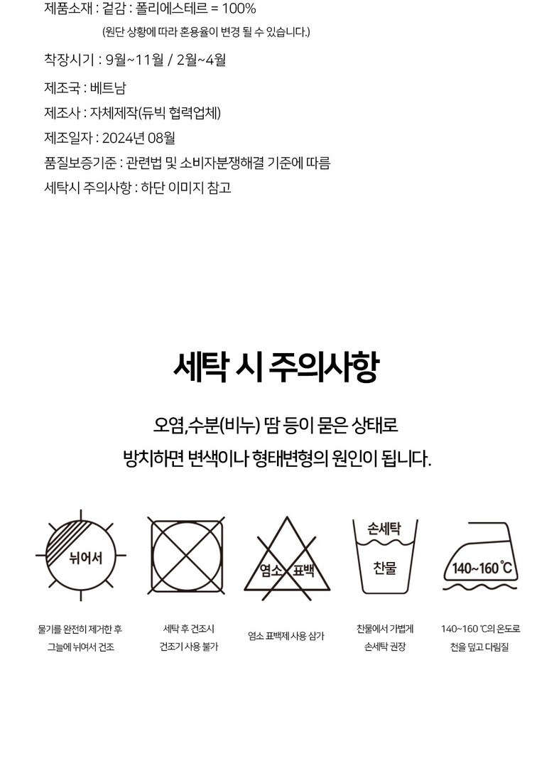 6. 세탁방법 및 취급시 주의사항 | 상품 이미지 참조 |