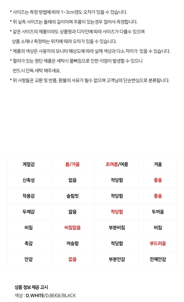 • 처음 배송된 상품상태와 다를 경우(세탁/착용 후 외출하신 경우) 반품이 불가합니다.
