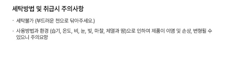6. 취급시 주의사항 | 열이나 직사광선, 습기에 주의하고, 부드러운 소재를 사용하여 닦아주시기 바랍니다. |